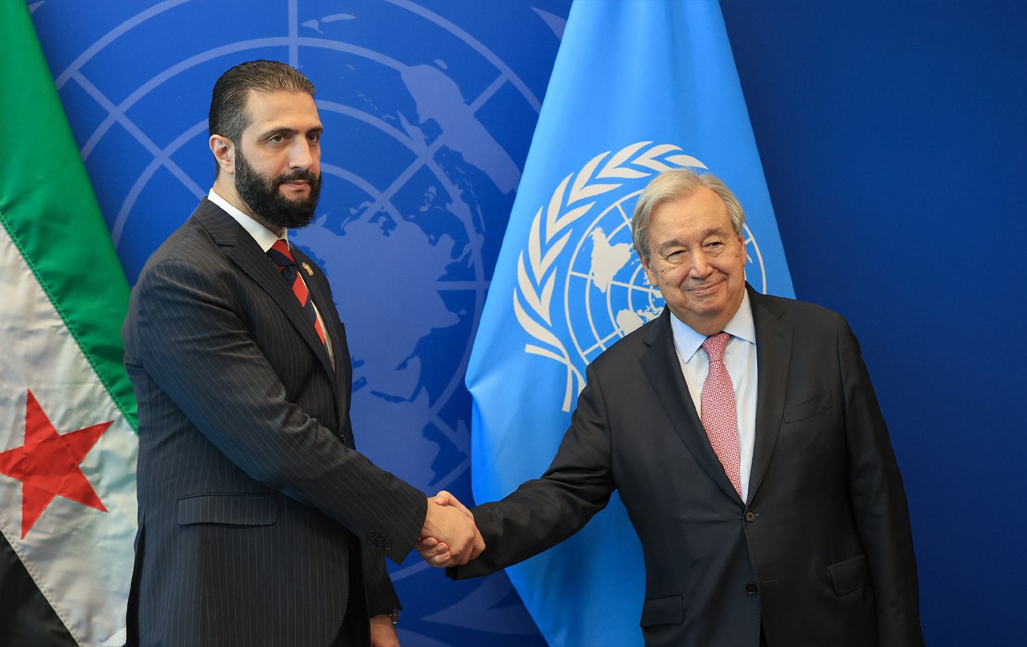 Li gorî daxuyaniya Berdevkiya Sekreterê Giştî yê NYyê, Guterres li kêleka Civata Giştî ya 80yemîn a Neteweyên Yekbûyî ya ku li New Yorkê hat lidarxistin, bi Serokkomarê Sûriyeyê Ehmed Şer re civiya.