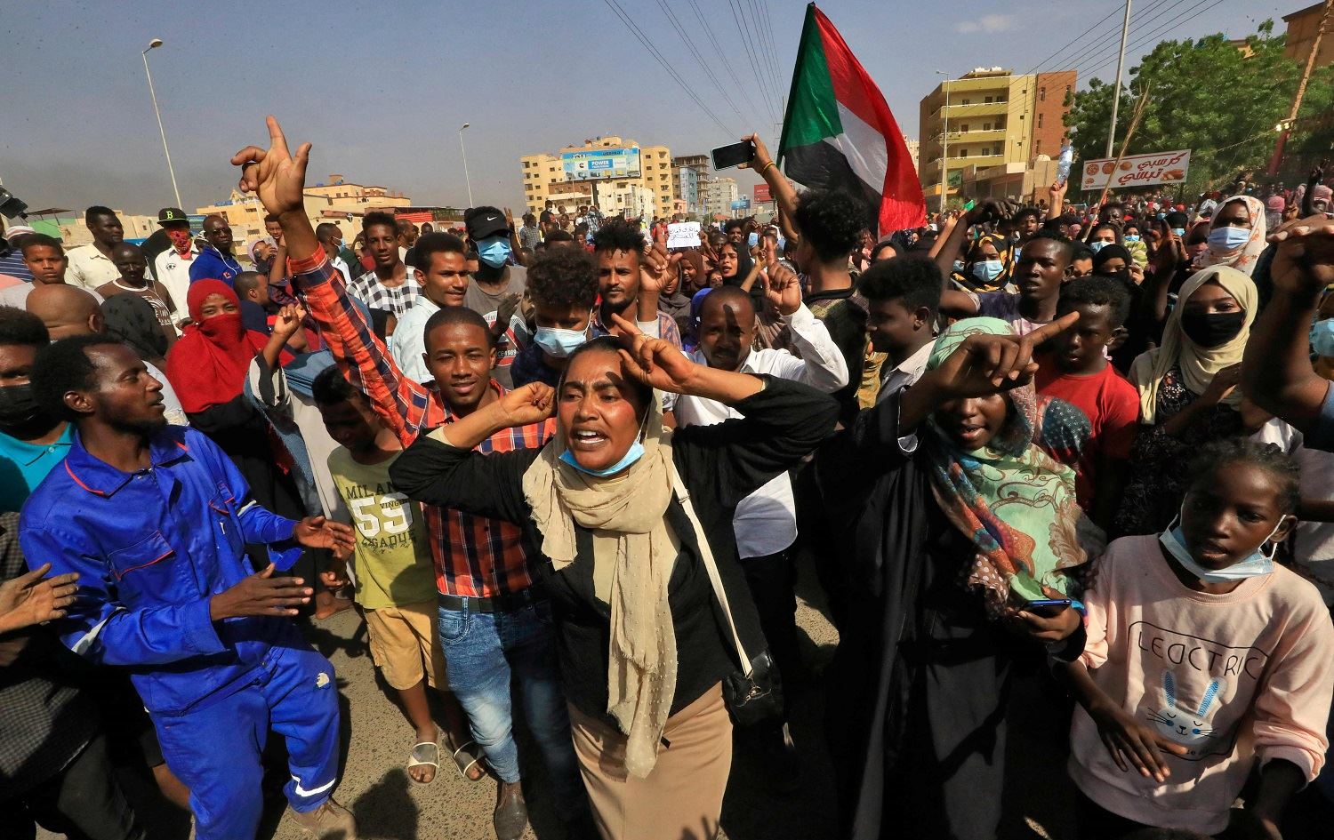Hejmarek xelkê Sudanê li Xertûm a paytexta welat li dijî pêngavên artêşê û desteserkirina Serokwezîr Ebdella Hemdok û çend wezîran xwepêşandan kirin. Wêne: AFP