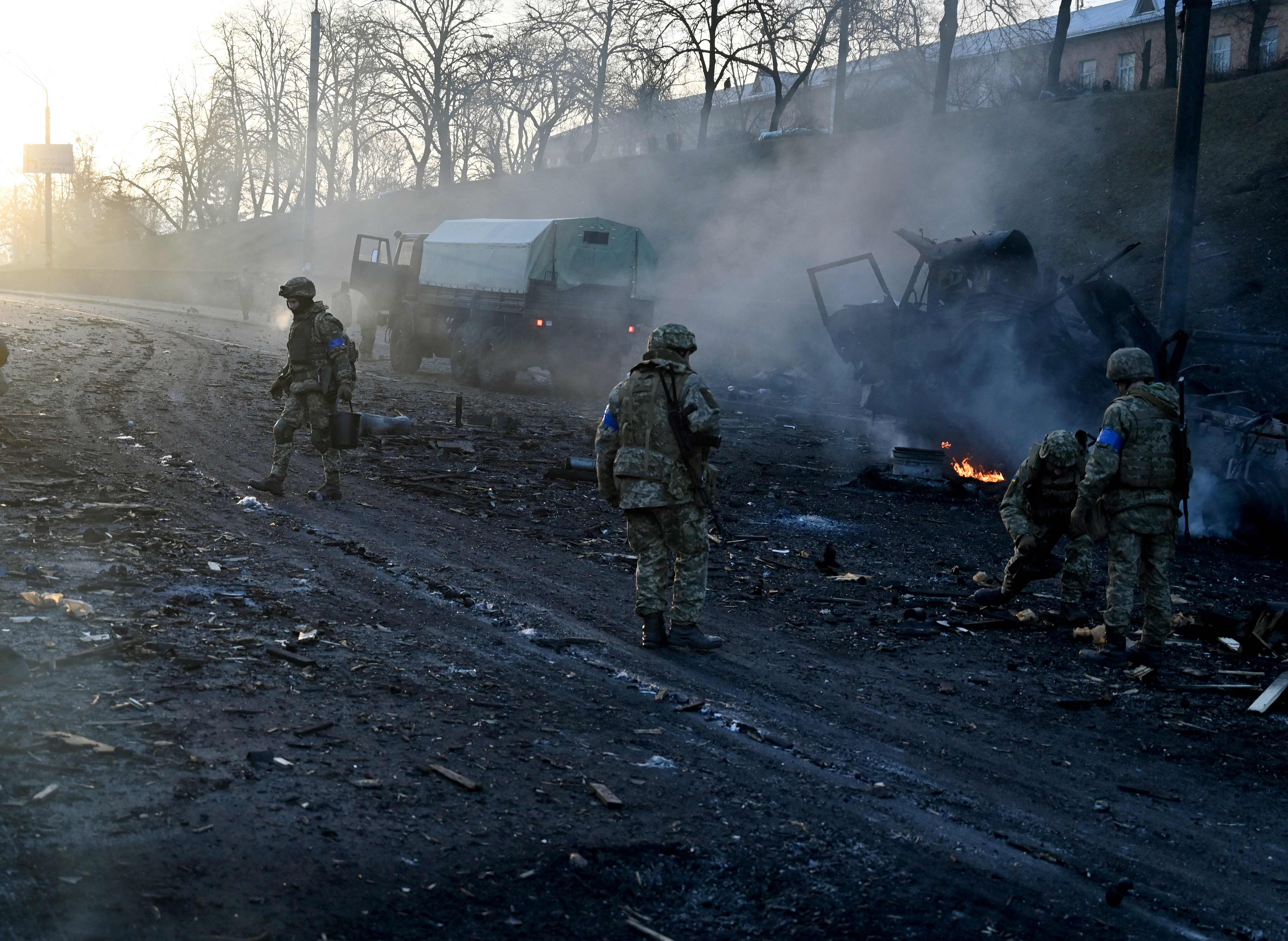 Serokê Ukraynayê Volodmyr Zelensky "Serok li vir e, leşkerên me li vir in û welatî li vir in. Em hemû li vir in û berevaniyê li serbixweyiya welatê xwe dikin."