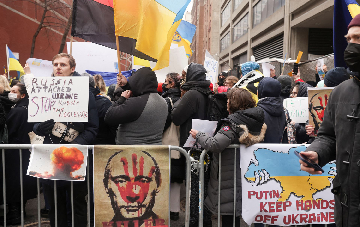 Di 2014an de jî Encûmena Asayîşa Navdewletî dagîrkirina Nîvgirava Crimea ji aliyê Rûsyayê ve bi projebiryarekê şermezar kiribû û wê demê jî Rûsya dijî wê projebiryarê VETO bikar anîbû. Sibeha Pêncşema borî Rûsyayê dest bi êrîşa ser Ukraynayê kir û piraniya navçeyên wî welatî bordûman û topbaran kirin, di encam de li gor Neteweyên Yekbûyî nêzîka 100 hezar kes ji xelkê Ukraynayê derbider û koçber bûne.