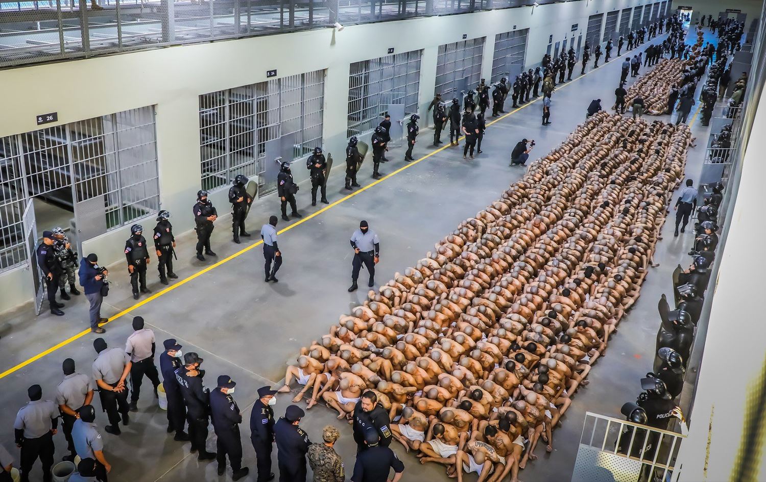 Di destpêkê de 2 hezar endamên çeteyan birin girtîgeha teknolojiya bilind. Di wêneyên ku ajansa nûçeyan a AFPê dane de, tê dîtin ku endamên çeteyan pêxwas, tenê şortên spî li xwe kirine dikevine girtîgehê. Hemû girtiyên ku destên wan li pişta wan kelepçekirî ne, deqên çeteyên wan li ser canên wan hene û serê hemûyan jî kur kirine.