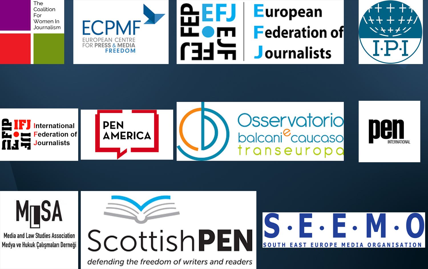 Daxuyanî ji aliyê Hevpeymaniya Jin a Rojnamevaniyê (CFWIJ), Pen a Engilish, Navenda Azadiya Medya û Çapemeniyê ya Ewropa (ECPMF), Federasyona Rojnamevanên Ewropa (EFJ), Federasyona Rojnamevanên Navdewletî (IFJ), Saziya Medyayê ya Navdewletî (IPI), Komeleya Medya û Xebatên Hiqûqê (MLSA), Osservatorio Balcani Caucaso Transeuropa (OBCT), PEN Amerîka, PEN International, PEN Netherlands, PEN Norway, PEN Québec, Platforma Rojnamevanên Serbixwe, P24,San Miguel PEN, Scottish PEN, Organîzasyona Medya Başûrê Rojhilatê Ewropa (SEEMO) hatiye îmzekirin.