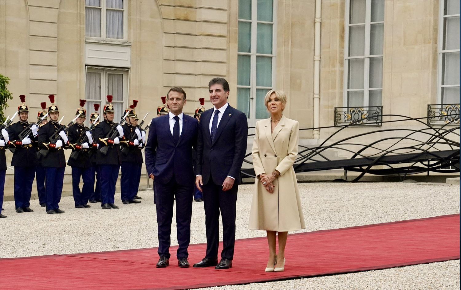 Serokê Herêma Kurdistanê Nêçîrvan Barzanî gihîşt Koşka Elyseeyê û ji aliyê Serokkomarê Fransayê Emmanuel Macron hat pêşwazîkirin.