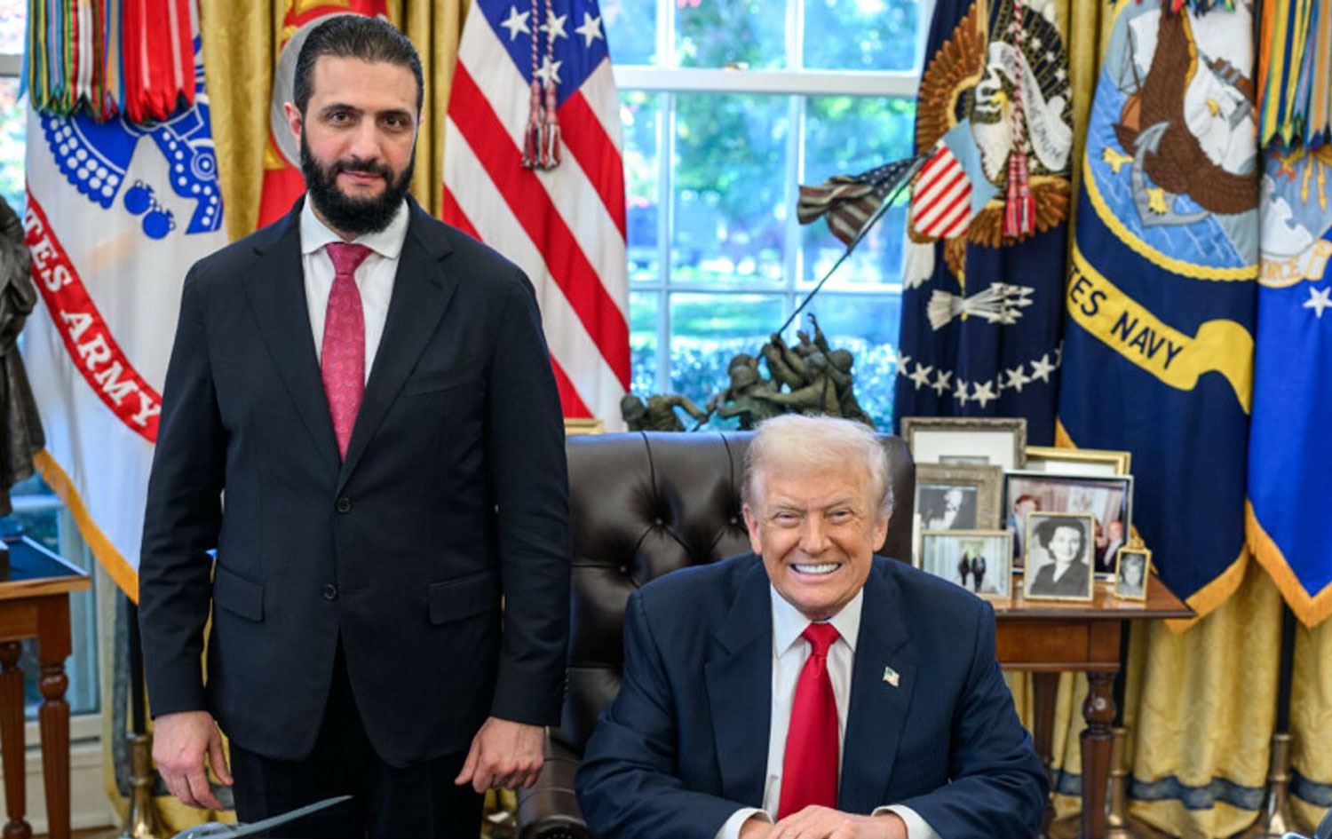 Hewlêr (Rûdaw) - Serokê Amerîkayê Donald Trump bi Serokkomarê Sûriyeyê yê qonaxa veguhêz Ehmed Şer re bi rêya telefonê axivî.