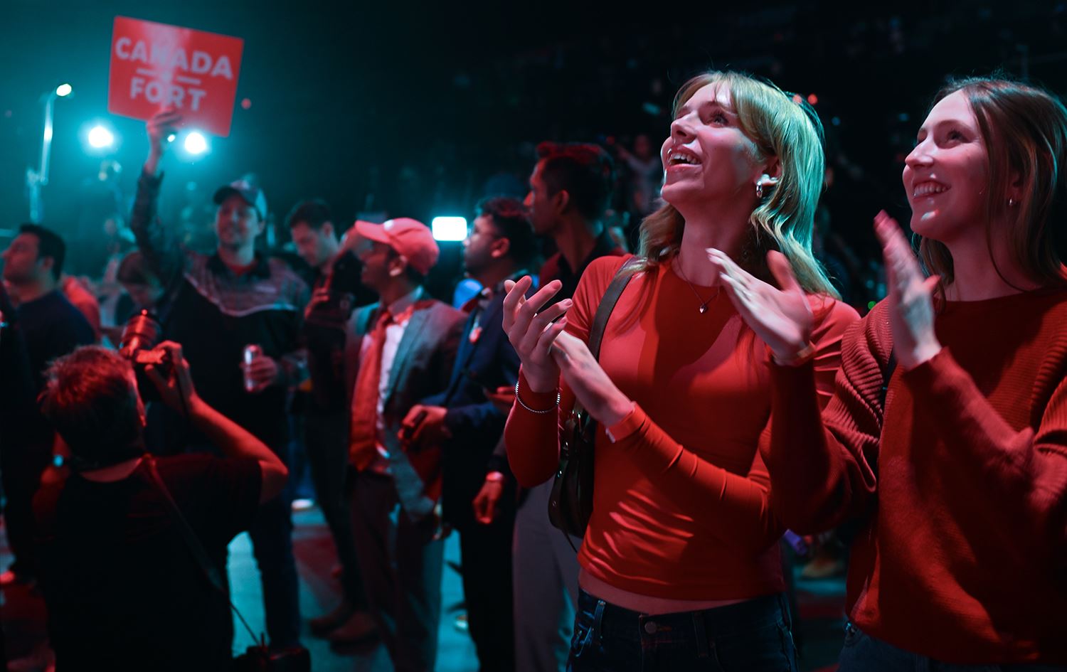Dema ku encamên destpêkê hatin ragihandin, dengê dilxweşiyê li qada Ottawayê bilind bû ku li wir alîgirên Partiya Lîberal ji bo temaşekirina encaman civiyabûn.