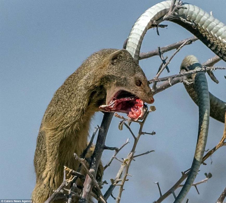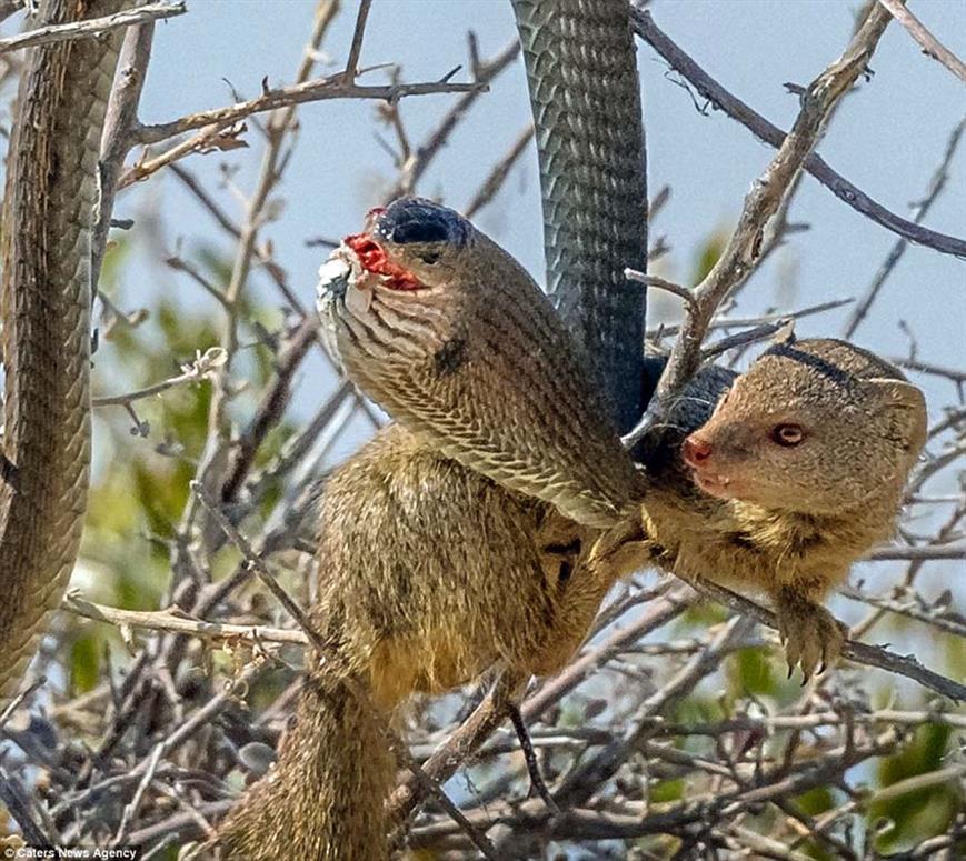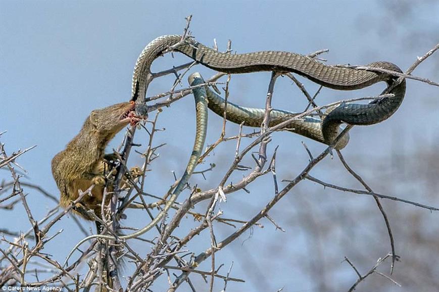Marê jehrî yê cînsê Bloomslang dixwest ku mişkê fîravûn ji xwe re bike xwarin. Lê, îcar mişk bi ser dikeve û dikare mar ji xwe re bike firavîn