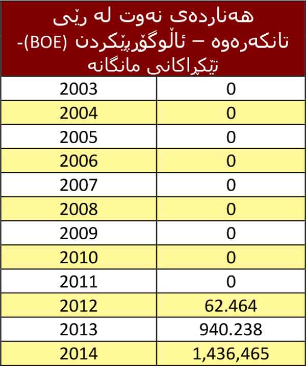 بەڵام زۆر لە كۆمپانیاكانی دیكە لە رێگەی تانكەرەوە نەوتیان هەناردە كردووە لەوانەش گەلف كیستۆن 260,798 بەرمیل، دانا غاز 438,222 بەرمیل، تی تی ئۆپكۆ 737,445 بەرمیل.