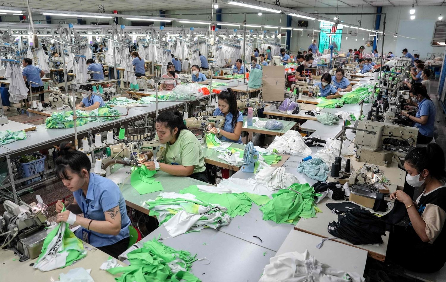 کارمەندانی کارگەیەکی جلوبەرگ لە شاری هۆ چی مینی ڤێتنام رۆژی 3-4-2025 لەکاتی کارکردندا، وێنە: Huu Kha / AFP