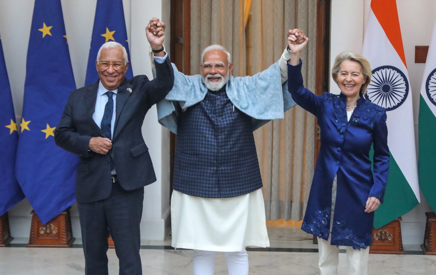 نارێندرا مۆدی، سەرۆکوەزیرانی هیندستان و بەرپرسانی باڵای ئەورووپا هیوادارن ئەم رێککەوتنە یارمەتیان بدات تاوەکو بتوانن رکابەریی ئابووریی ئەمریکا و چین بکەن.