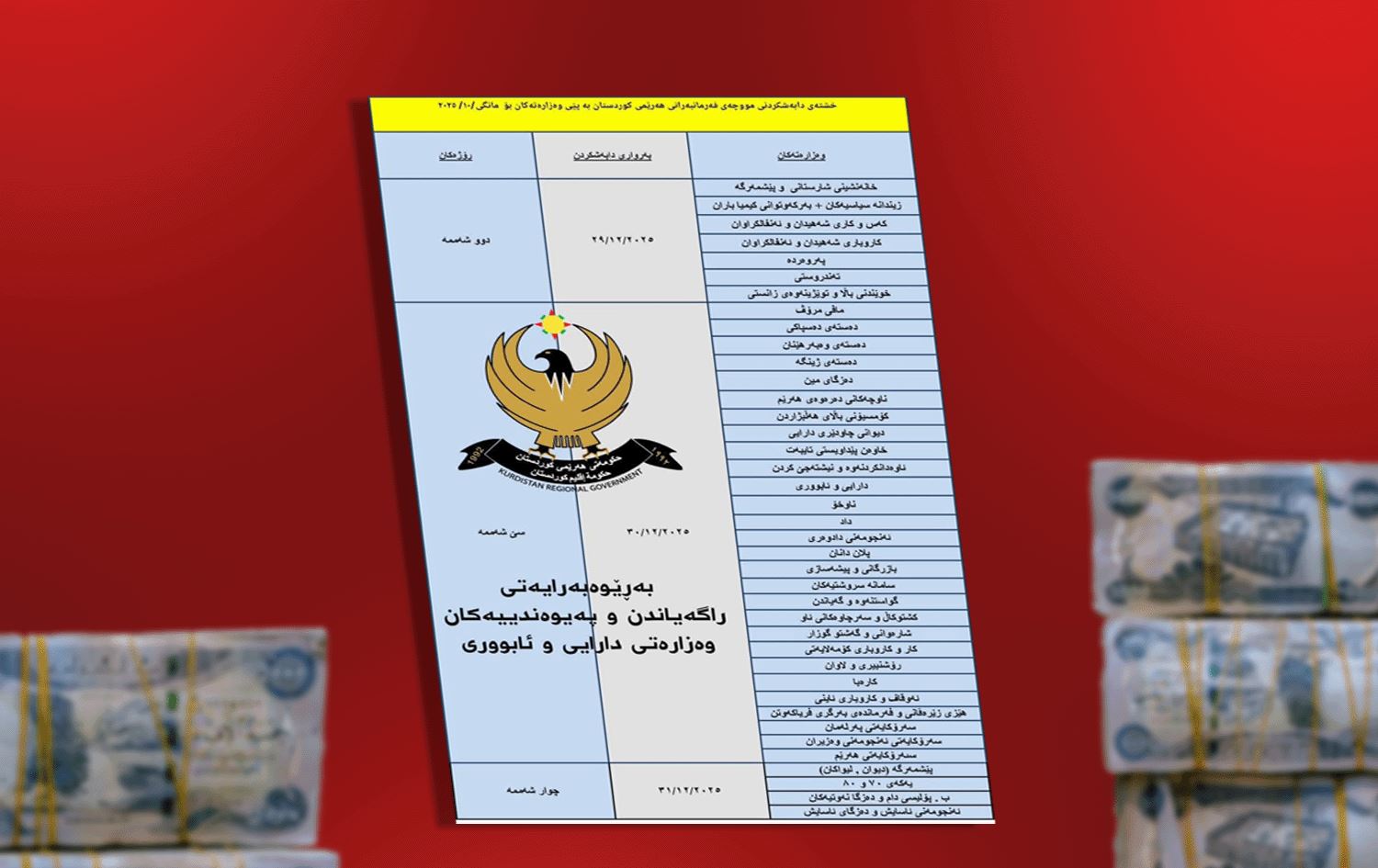 خشتەی دوایین مووچەی ساڵی 2025ـی مووچەخۆرانی هەرێمی کوردستان