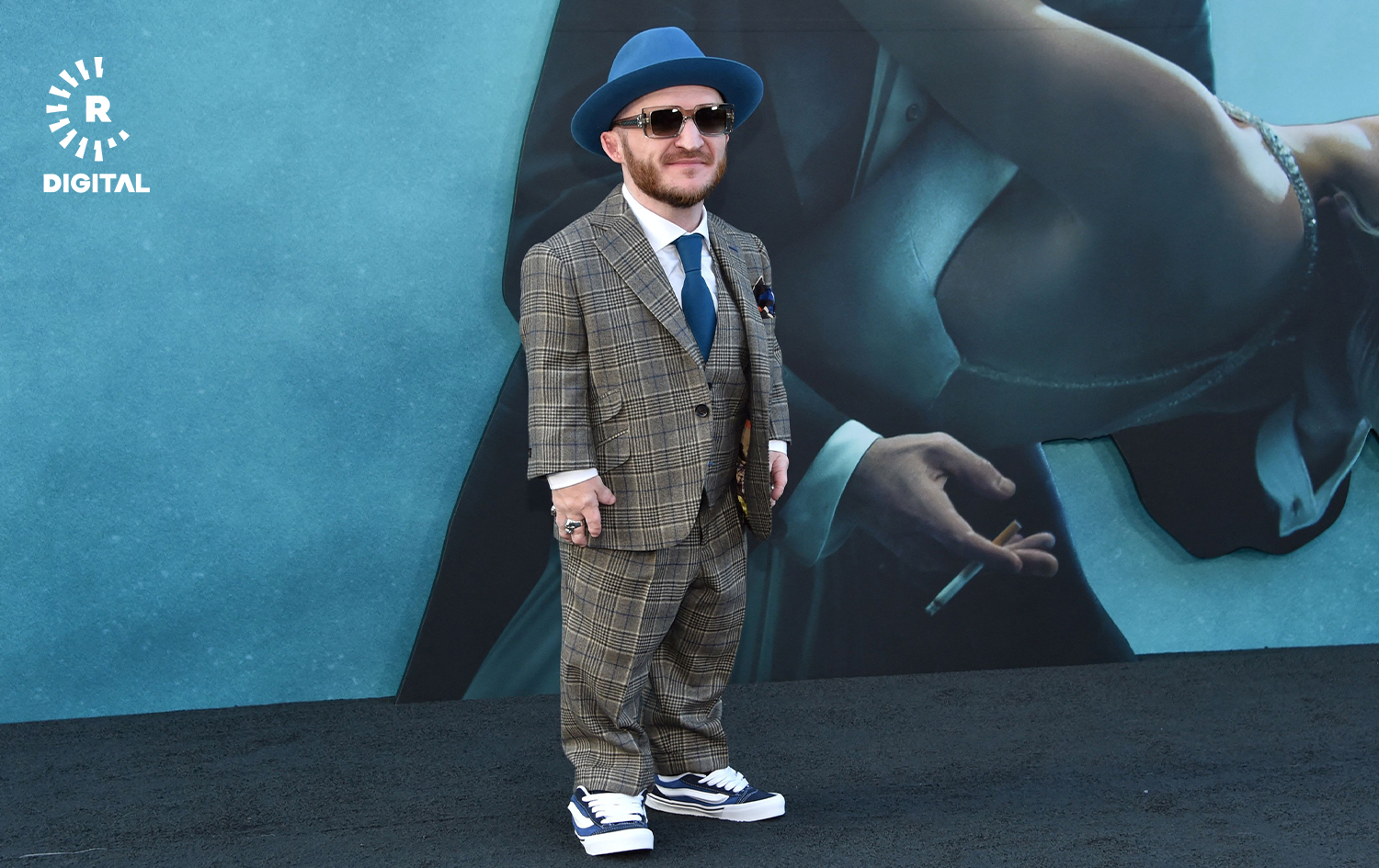 لەیدی گاگا، لەگەڵ دەستگیرانەکەی مایکڵ پۆلانسکی بە جلێکی سوور و مەیکئەپی کارەکتەری هارلی کوین، بەسەر فەرشی سووردا تێپەڕی.