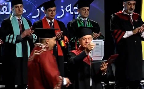 بەئامادەبوونی جێگری سەرۆکی پەرلەمانی کوردستان، وەزیری خوێندنی باڵا، پارێزگاری سلێمانی، سەرۆکایەتی زانکۆی سلێمانی، هونەرمەندان و کەسایەتییە هونەری و سیاسی و حیزبییەکان، لە رێوڕەسمێکدا ئێوارەی ئەمڕۆ پێنجشەممە زانکۆی سلێمانی دکتۆرای شانازی بەخشییە هونەرمەند مەزهەر خالقی.