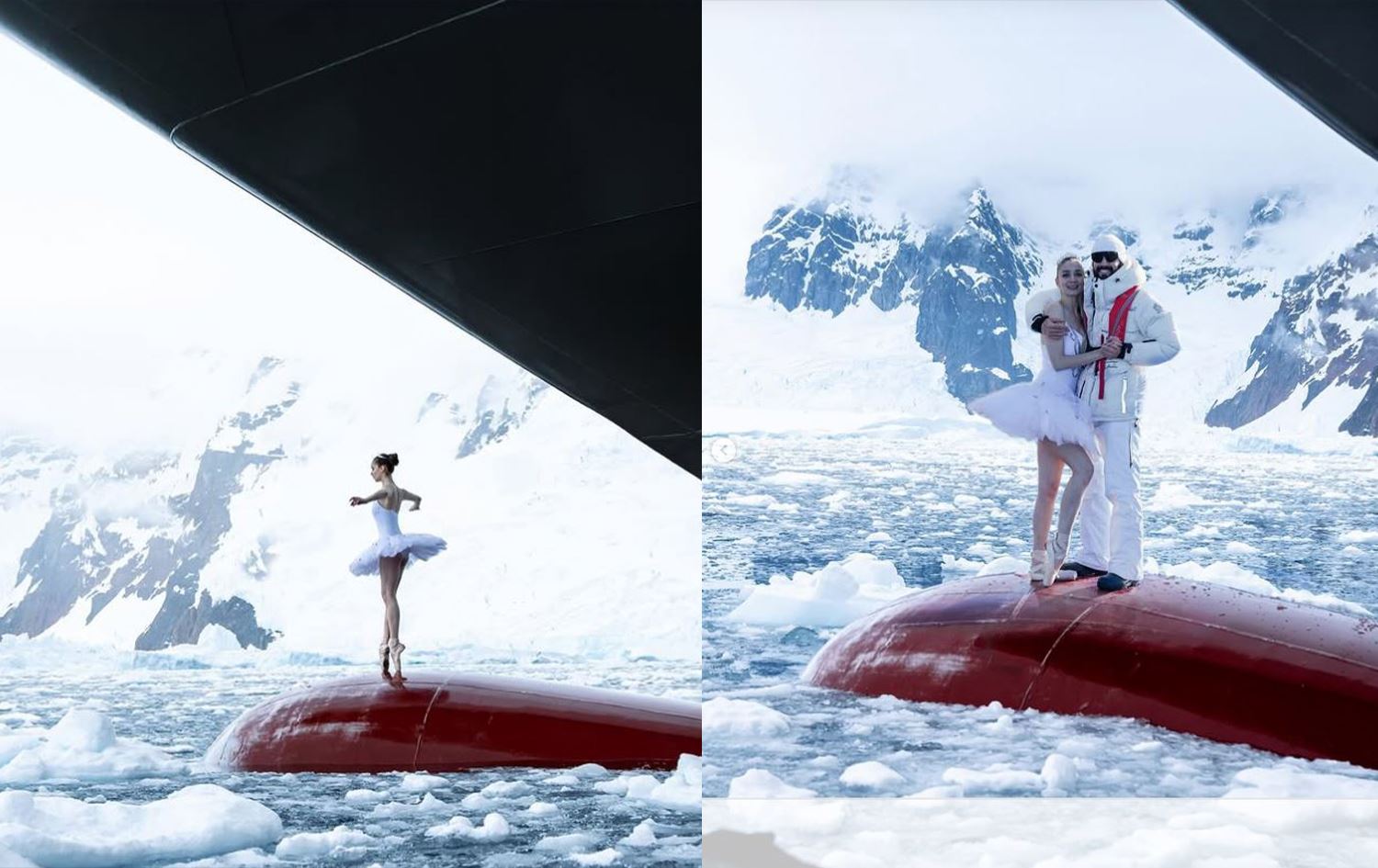 لە ڤیدیۆکەدا دەردەکەوێت، سەماکار لە پێشەوەی کەشتییەکی گەشتیارییدا کە لە نێو سەهۆڵاودایە لە جەمسەری باشوور، بە جلوبەرگی سەمای بالێ، سەما دەکات.