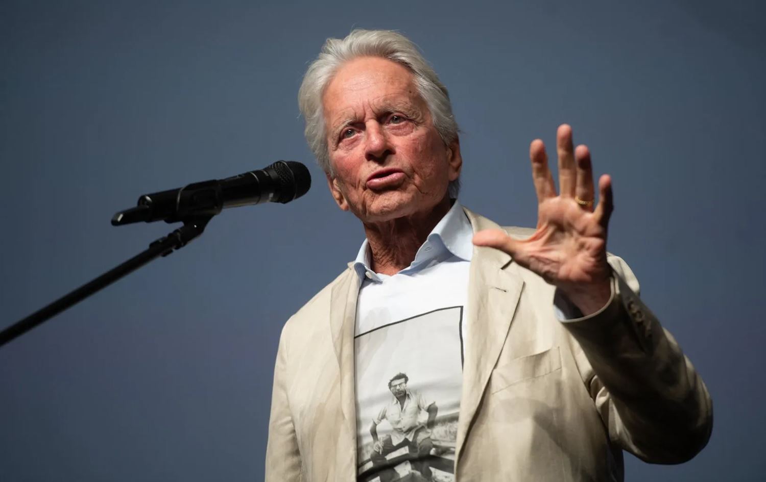 ئەم لێدوانانەی دۆگلاس لە میانی بەشداریکردنیدا بوو لە فێستیڤاڵی نێودەوڵەتیی فیلمی کارلۆڤی ڤاری، تێیدا فیلمی"One Flew Over the Cuckoo's Nest" ـی ئەو ئەکتەرە پێشاندرا کە بەرهەمی 1975ـە و 50 ساڵ بەسەر بەرهەمهێنانیدا تێدەپەڕێت.