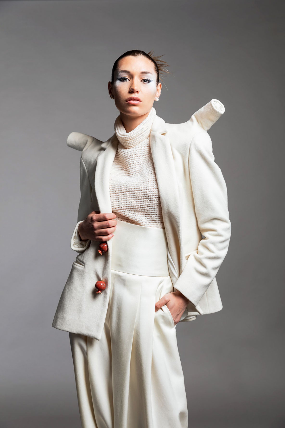 ئەو دیزاینەرە کوردە لە کۆلێکشنەکەیدا هەنار و تەسبێحی قەزوانی بەکارهێناوە و دەڵێت، لە منداڵییەوە حەزی بۆ فاشن هەبووە و لە یارییەکانی سەردەمی منداڵیدا، لەگەڵ خوشەکەکەی یاریی بە بووکەڵە و بەکارهێنانی جلوبەرگی بووکەڵەکان کردووە، هەروەها بەردەوام بە دیار ئامێری دوورمانی داپیرەی دانیشتووە و ئەمەش کاریگەری لەسەر ئەو هەبووە کە لە منداڵییەوە حەز و خولیای بۆ ئەو بوارە هەبێت و باوکیشی پشتیوانی لە حەز و ئارەزووەکەی کردووە کە ببێتە دیزاینەر.