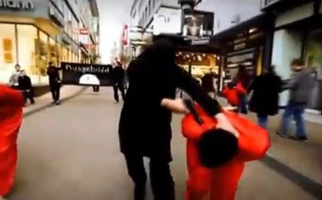 کۆمەڵە گەنجێکی وڵاتی ئەڵمانیا لە بارەی نیشاندانی چۆنیەتی سەربڕینی خەڵک لەلایەن رێکخراوی داعشەوە، شانۆگەرییەکیان لە شەقامەکانی شاری "ئایسن"ی ئەڵمانیا پێشکەشکرد.