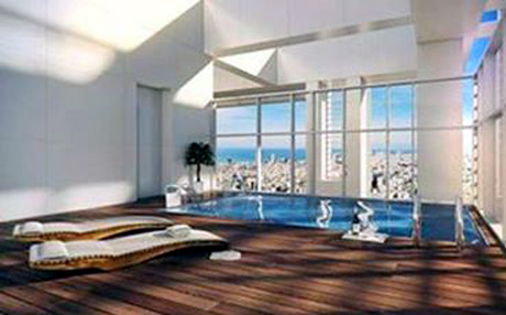 روویەکی ئەو خانووە گەورەیەی مادۆنا دەکەوێتە سەر دەریای ناوەڕاست، هۆڵێکی وەرزشی گەورەی تێدایە لەگەڵ چەند ژوورێکی لوکس، خانووەکەش لە لایەن ئەندازیاری بیناسازی ئەمەریکی ریچارد مایر، دیزاین کراوە.