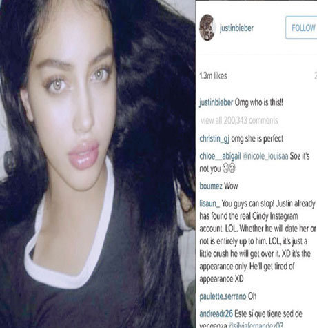 ئەو کچەی جاستن بیبەر شەیدای بووە، ناوی سیندی کیمبرلی و خەڵکی ئیسپانیایە، دەمێکە لە تۆڕی کۆمەڵایەتی ئینستاگرام ، بەهۆی جوانییەوە ناوبانگی دەرکردووە، سیندی تەمەنی 17 ساڵە، بەڵام شێوەی زۆر لە نمایشکاری بەناوبانگی رووسی ئارینا شایک دەچێت، هەر ئەمەش وایکردووە جاستن بیبەر شەیدای جوانییەکەی بێت.