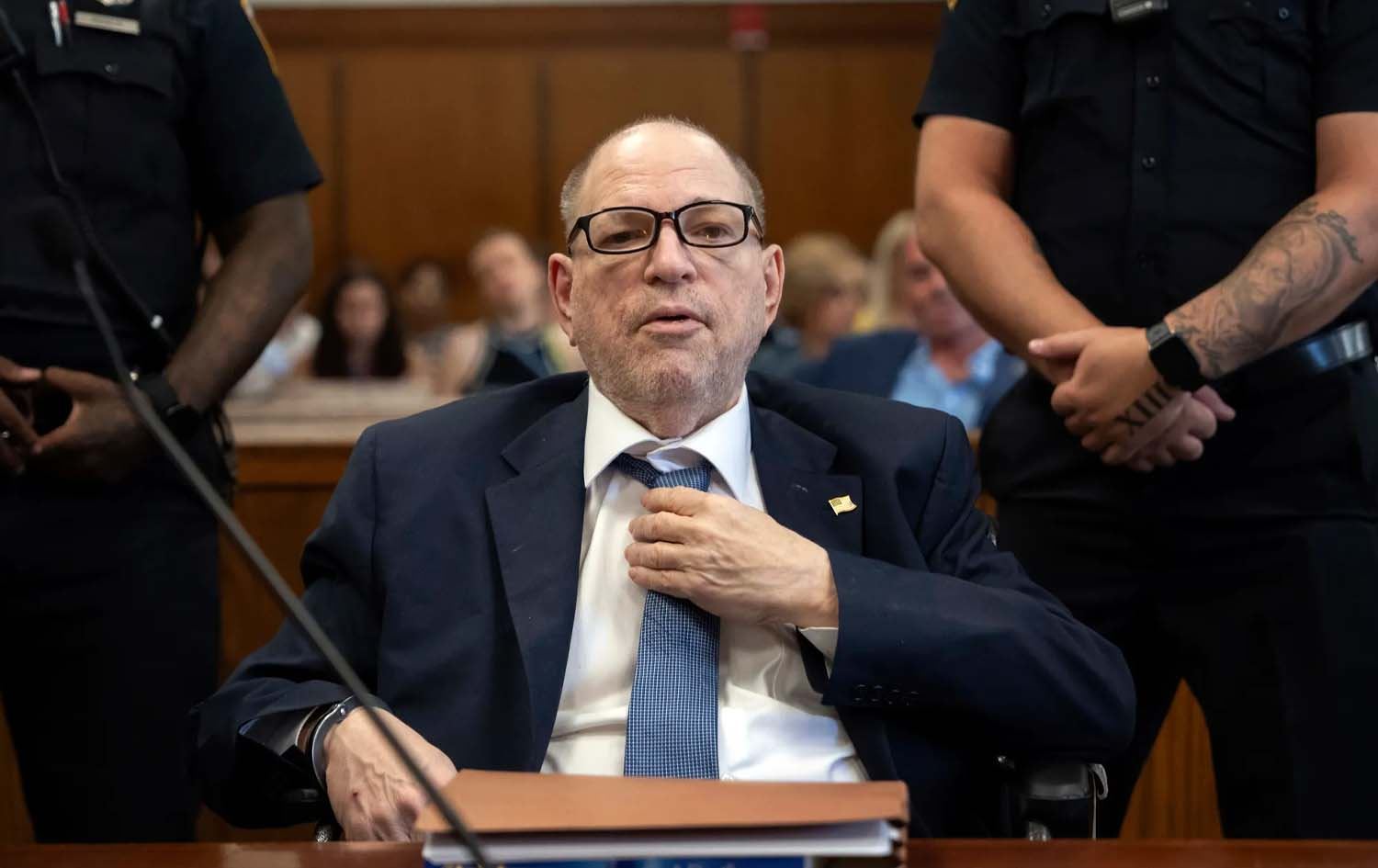 بەهۆی بە تەمەندا چوونی هارڤی واینستن و نەخۆشکەوتنی، ئێستا لەسەر کورسییە و چەند جارێکی دیکە لە دادگا ئامادە بووە، بەڵام توانای وەستان لەسەر قاچەکانی نەبووە.