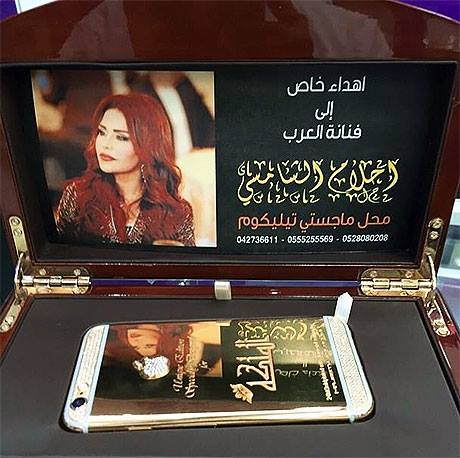 ئەحلام وێنەی ئایفۆنەكەی گرتووەو لە تۆڕی ئەنستاگرام بڵاویكردووەتەوە و نووسیویەتی، "ئایفۆن 6ی داپۆشراو بە ئەڵماسی راستەقینەی پلە یەكی بەلجیكی، كە بەشێوەیەكی تایبەت بۆ ئەحلام لە بازاڕی دوبەی ماجستی دروستكراوە."