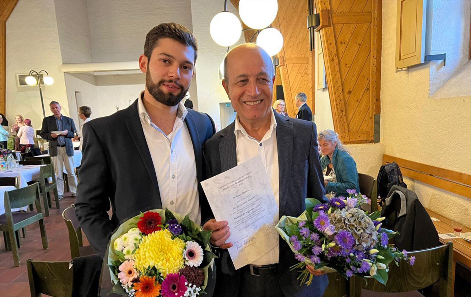 بەخشینی خەڵاتی 'ئەرگولا فۆن گرومباخ' بە د. هاوڕێ زەنگەنە، دوێنێ هەینی 13ـی تشرینی یەکەمی 2023 بوو و رێزلێنان بوو لە میتۆدێکی نوێ بۆ 'دیالۆگی هزری فرەئایینی رەنگاورەنگ' لە رێگەی هونەری دیالۆگ و هونەری شانۆوە.