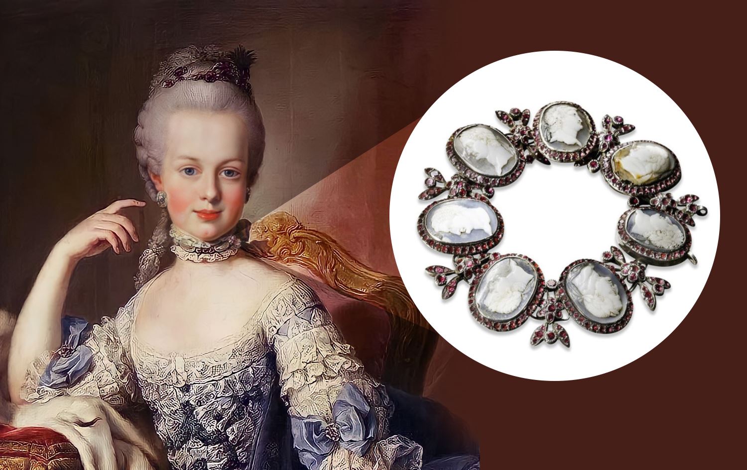 ماری ئەنتوانێت بازنەکەی لە دیزاینەرەکەی کڕیوە کە وێنەی حەوت ئیمپراتۆری رۆمانی لەسەر نەخشێندراوە.