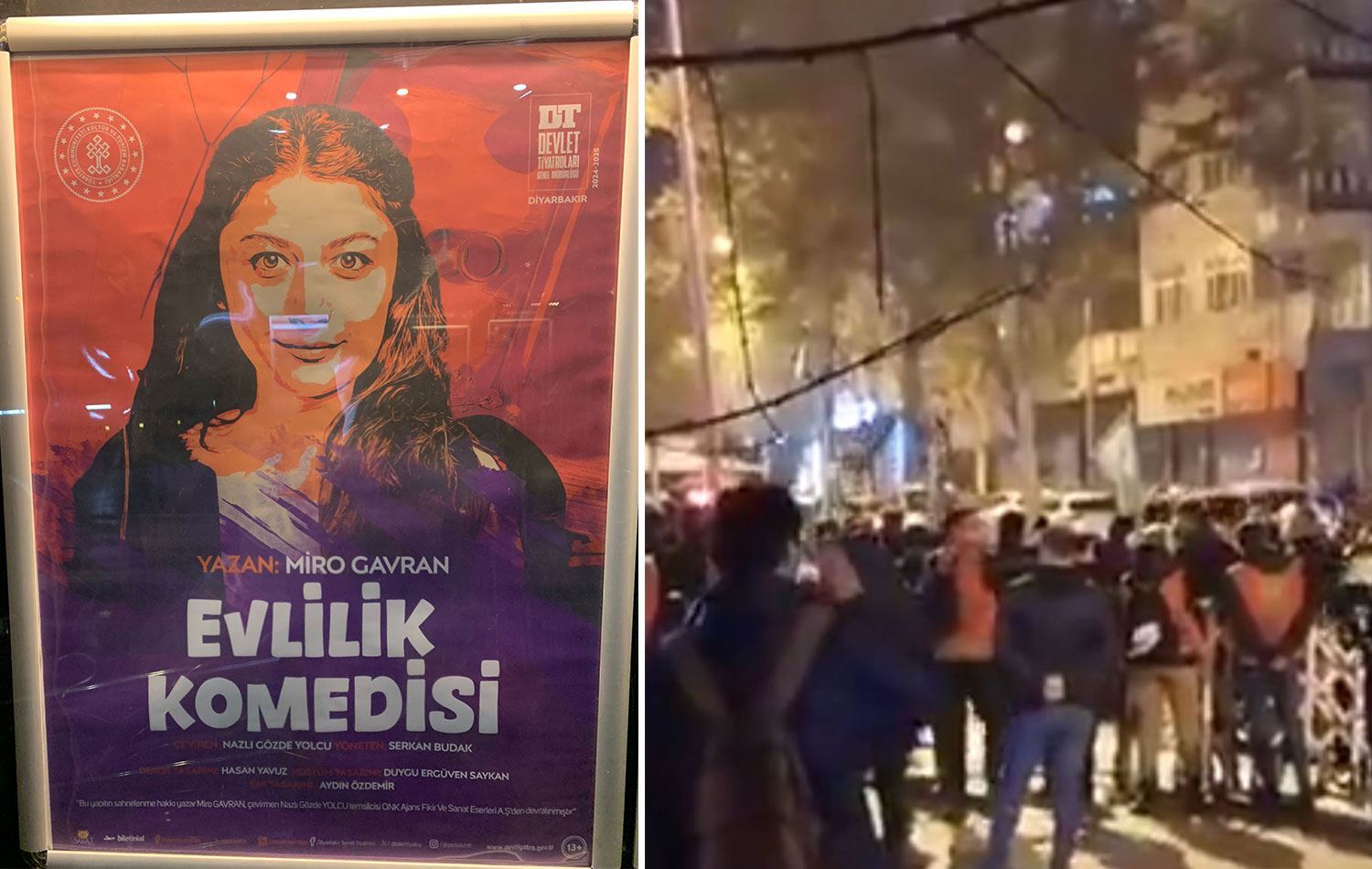 بڕیاربوو کاژێر 20:15 خولەکی شەوی رابردوو لە هۆڵی شانۆی ئامەد، شانۆگەری "هاوژینی ژنەکەم" نمایش بکرێت کە لەلایەن نووسەری کرواتی میرۆ گاڤرانەوە نووسراوە. ژمارەیەک کەس هەڵیانکوتانە سەر باڵەخانەی شانۆی دەوڵەت و ناڕەزاییان دەربڕی.