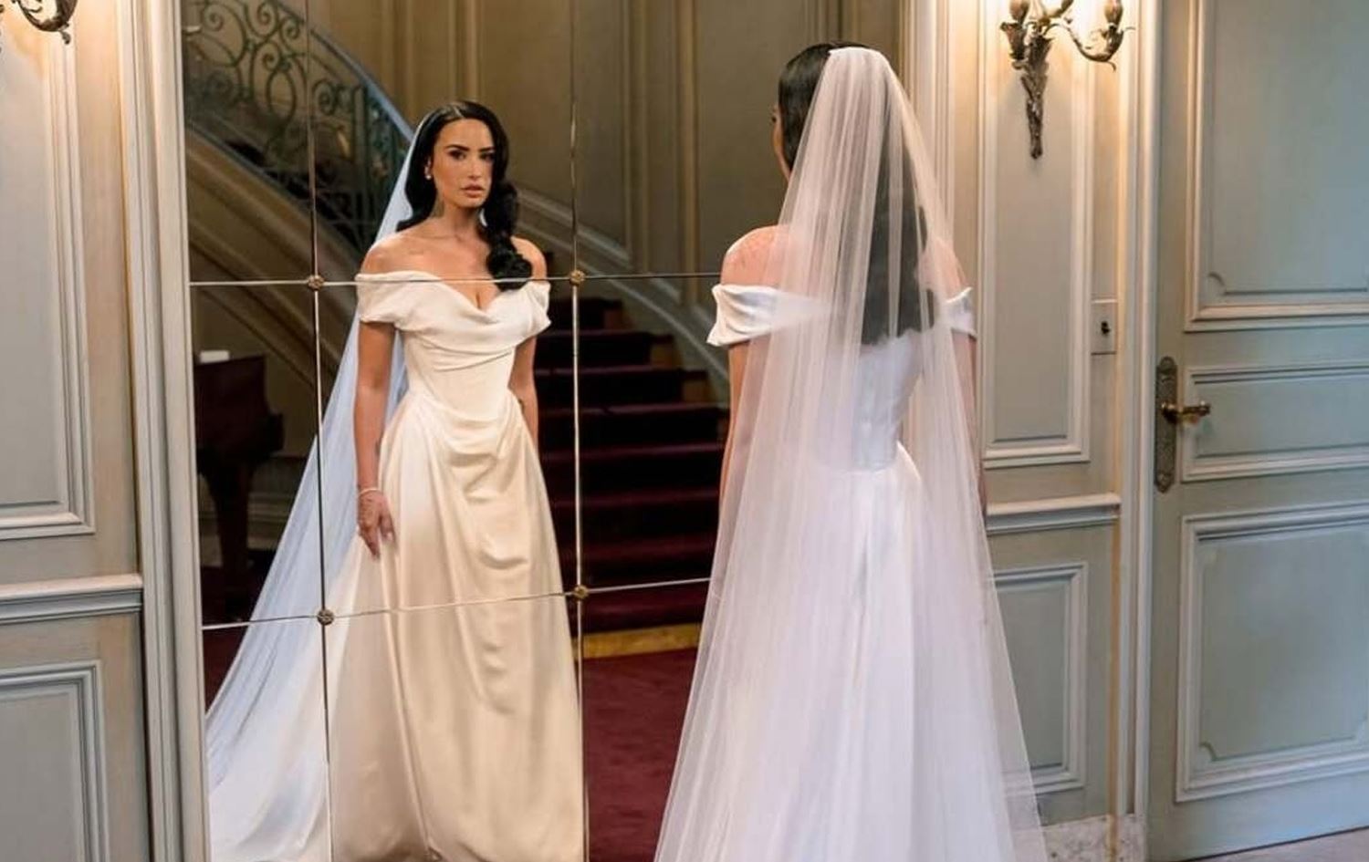 لۆڤاتۆ، لە ئاهەنگی هاوژینییدا جلێکی سپیی لە براندی ڤیڤیەن وێستوۆد پۆشی و جیوتس براندی سان لۆرانتی پۆشی.