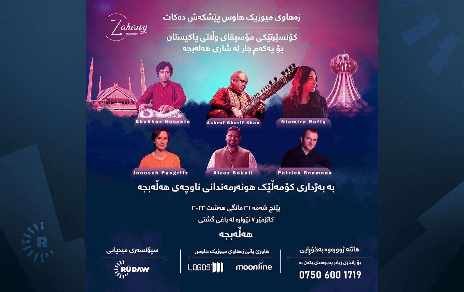 هەژار زەهاوی، سەرپەرشتیاری ماڵی میوزیکی زەهاوی، بە رووداوی راگەیاند، ئەمجارە جیاواز لە کۆنسێرتەکانی دیکەی ماڵی میوزیکی زەهاوی، کۆنسێرتەکە لە قەڵای هەولێر بەڕێوە ناچێت، بەڵکو لە هەڵەبجە سازدەکرێت و جگە لە گرووپێکی میوزیکی پاکستانی، ژمارەیەک هونەرمەندی هەڵەبجەش تێیدا بەشدار دەبن.