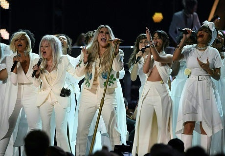 لە کۆتایی مەڕاسیمەکەشدا خانمە گۆرانیبێژ Kesha لەگەڵ گرووپێک لە گۆرانیبێژان و میوزیکژەنان بە جلی سپی وەکو پاڵپشتییەک بۆ ئافرەتان گۆرانییەکیان بەناوی "Praying" پێشكەشکرد، کە بووە جێگای خۆشحاڵی هەموو ئامادەبووان.