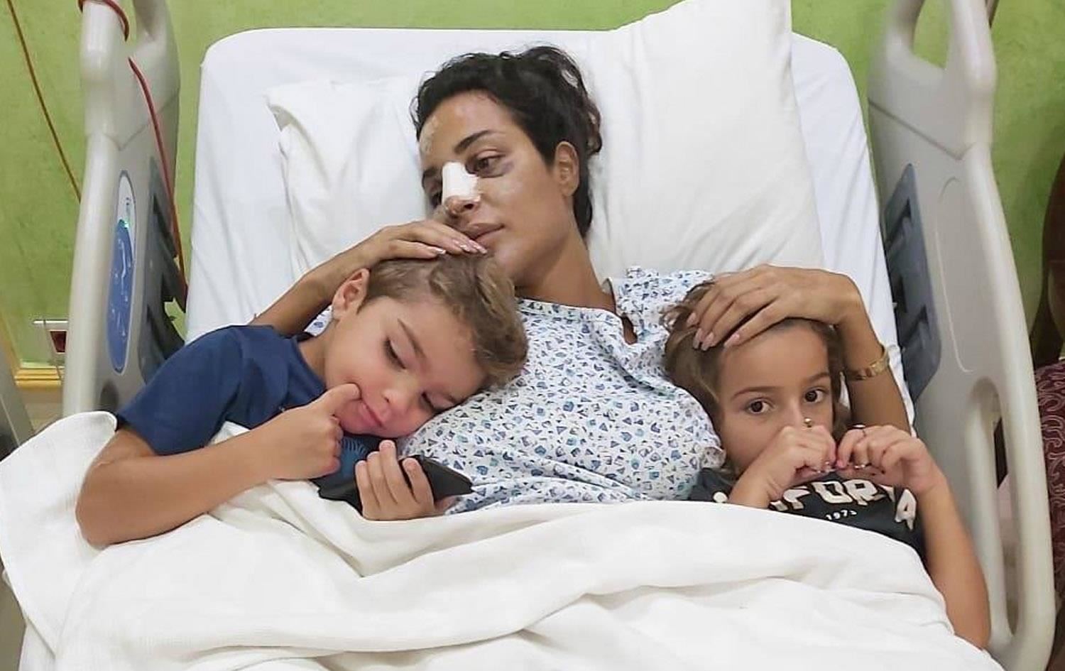 لە وێنەکەدا نادین لەگەڵ کوڕ و كچەکەی لەسەر تەختی نەخۆشخانە دەبینرێت و دەڵێت سبەینێ نەخۆشخانە بەجێدەهێڵێت.