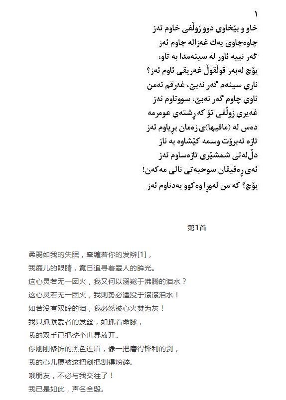 نموونەیەک لە شیعرەکان بە کوردی و چینی: