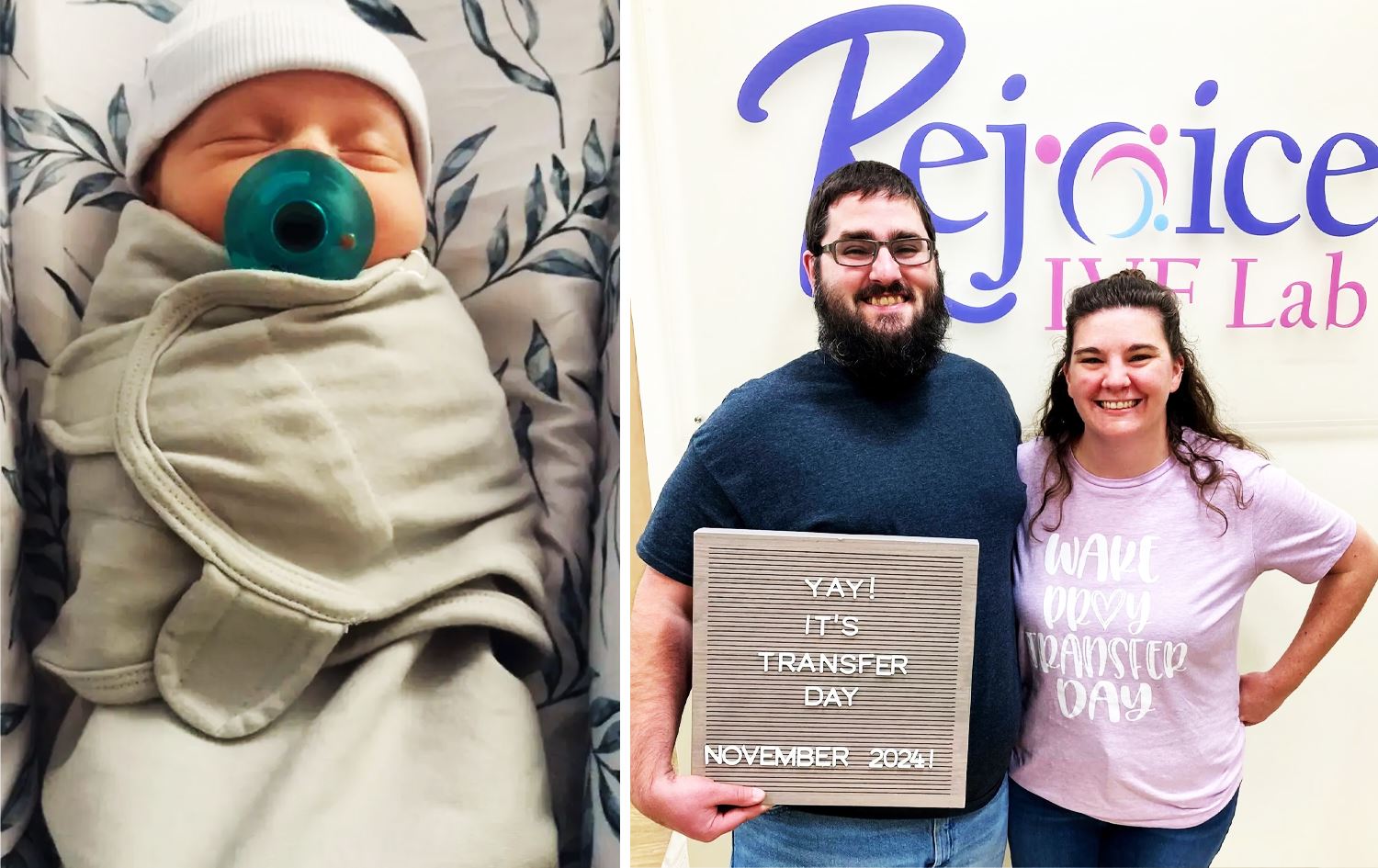 لیندسی پیرس و هاوژینەکەی لە رۆژی گواستنەوەی هێلکە پیتێندراوەکە بۆ نێو منداڵدانی - منداڵەکە تادیۆسە لە چەند رۆژی دوای لەدایکبوونی.