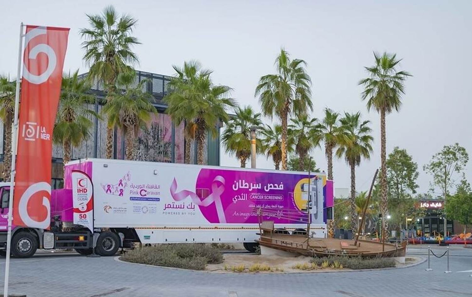 رێکخراوێکی ئیماراتی بە بۆنەی مانگی ''ئۆکتۆبەری پەمەییەوە'' نۆرینگەی گەڕۆکیان دروستکردووە لەشێوەی کەرەڤانە و بە شوێنە جیاوازەکانی وڵاتەکەدا دەگەڕێن، تاوەکو پشکنینی مەمک و هۆشیارکردنەوە بۆ خانمان بکەن.