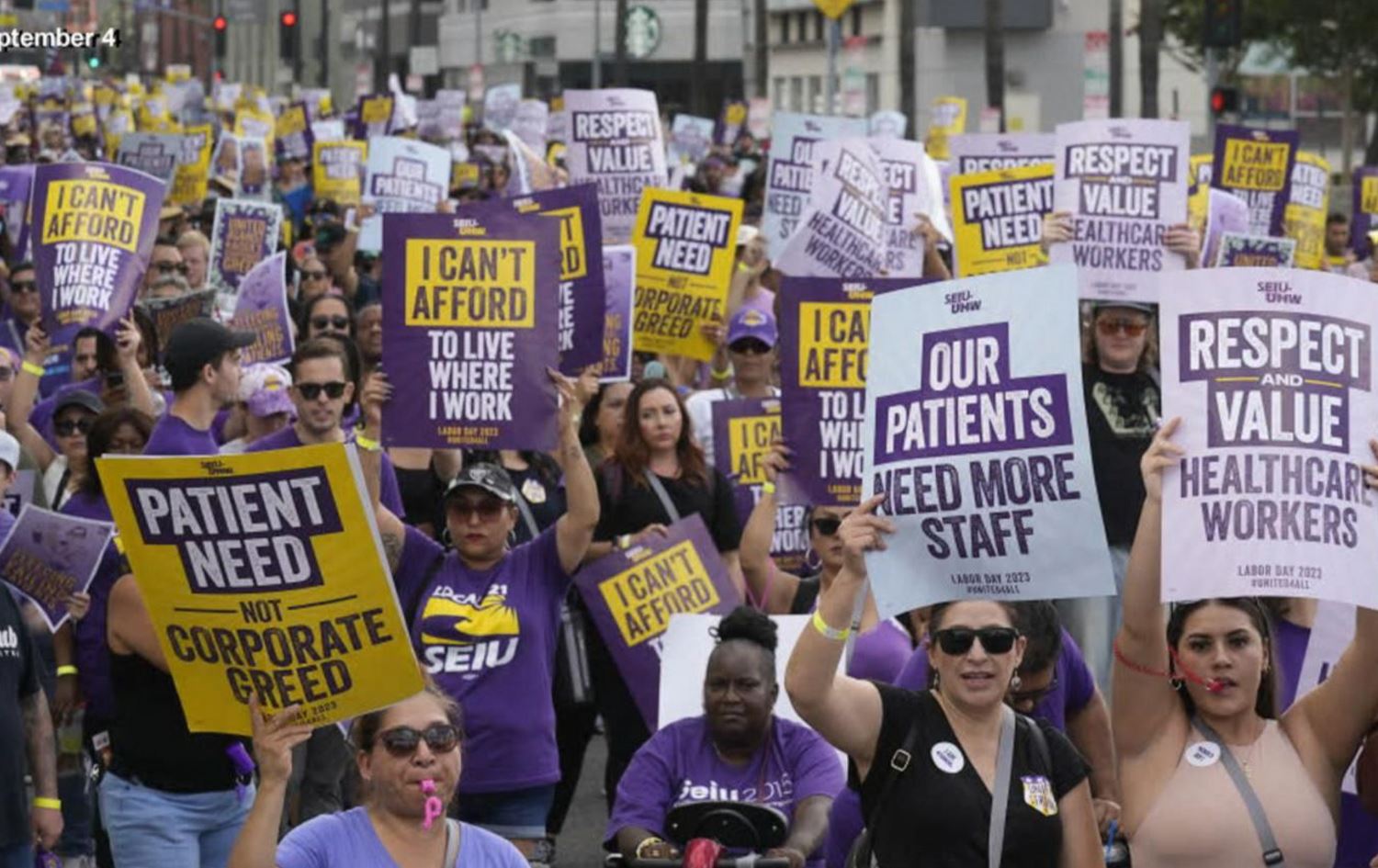 ئەو مانگرتنەی کارمەندانی کەرتی تەندروستیی وڵاتەکە، گەورەترین مانگرتنی کارمەندانە کە تائێستا لە کەرتی تەندروستیی ئەمریکا روویدابێت و داوادەکەن کە پەلە بکرێت لە جێبەجێکردنی داواکارییەکانیان.