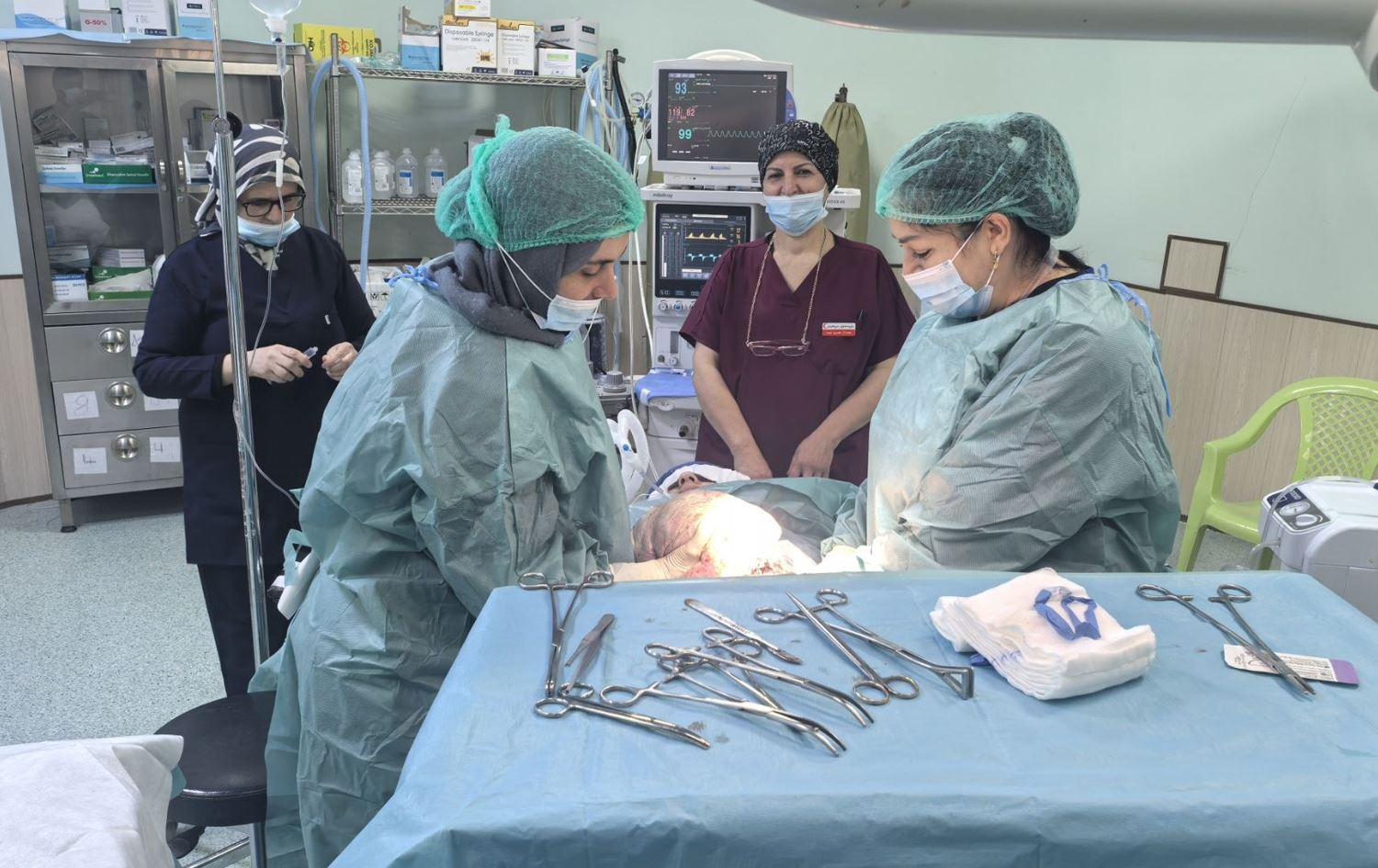 د. سانا ئیسماعیل و تیمەکەی لە کاتی نەشتەرگەریی منداڵبوونەکە. وێنە: لەلایەن د. ساناوە نێردراوە