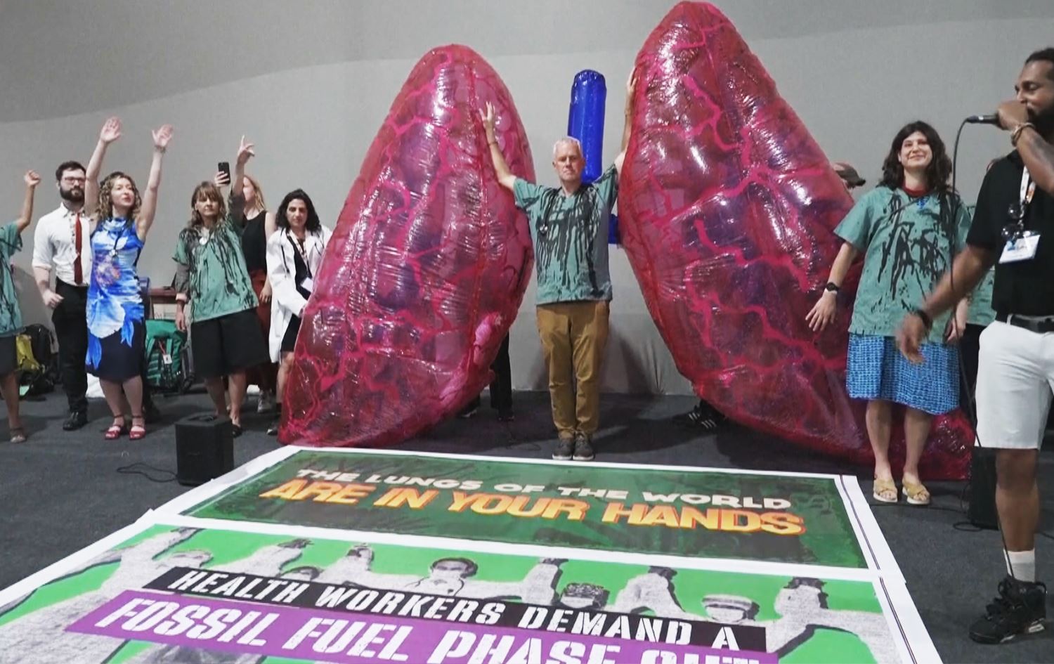ئەو پزیشکانە لە شاری بیلیم لە بەرازیل سەما دەکەن و گۆرانیش دەچڕم، پەیکەرێکی سییەکانیان دروستکردووە و هەموویان بەیەکەوە دەڵێن: "لە لووتەوە دەچێتە ژوورەوە، لە دەمەوە دێتە دەرەوە، پێویستە سووتەمەنی بەردی قۆناخ بە قۆناخ لەنێو ببردرێت''.