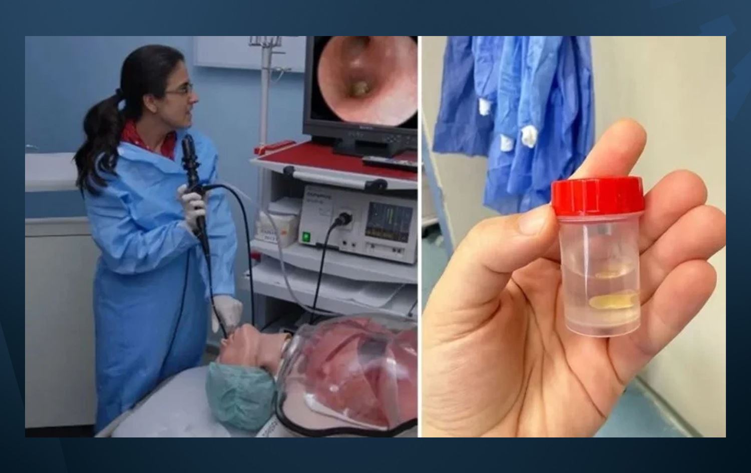 نەشتەرگەریی دەرهێنانەکەی لە نەخۆشخانەی زانکۆی پاموکەلێ بووە و پڕۆفیسۆر گۆکسل ئاڵتینچەک، پسپۆڕێکی نەخۆشخانەکە دەڵێت: ئەمە حاڵەتێکی باوە کە خۆراک دەچێتە نێو بۆڕیی هەوا و سییەکان بەتایبەت لەو کەسانەی بە خێرایی و بە پاڵکەوتنەوە ناندەخۆن.