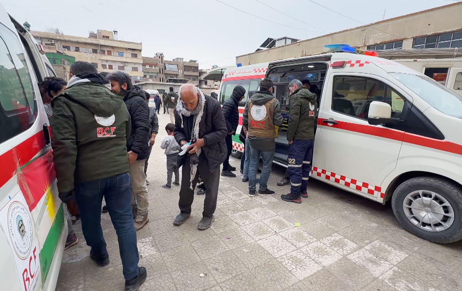 تیمی پزیشکیی دەزگای خێرخوازیی بارزانی لە قامیشلۆن و چارەسەری نەخۆشەکان دەکەن. وێنە: رووداو