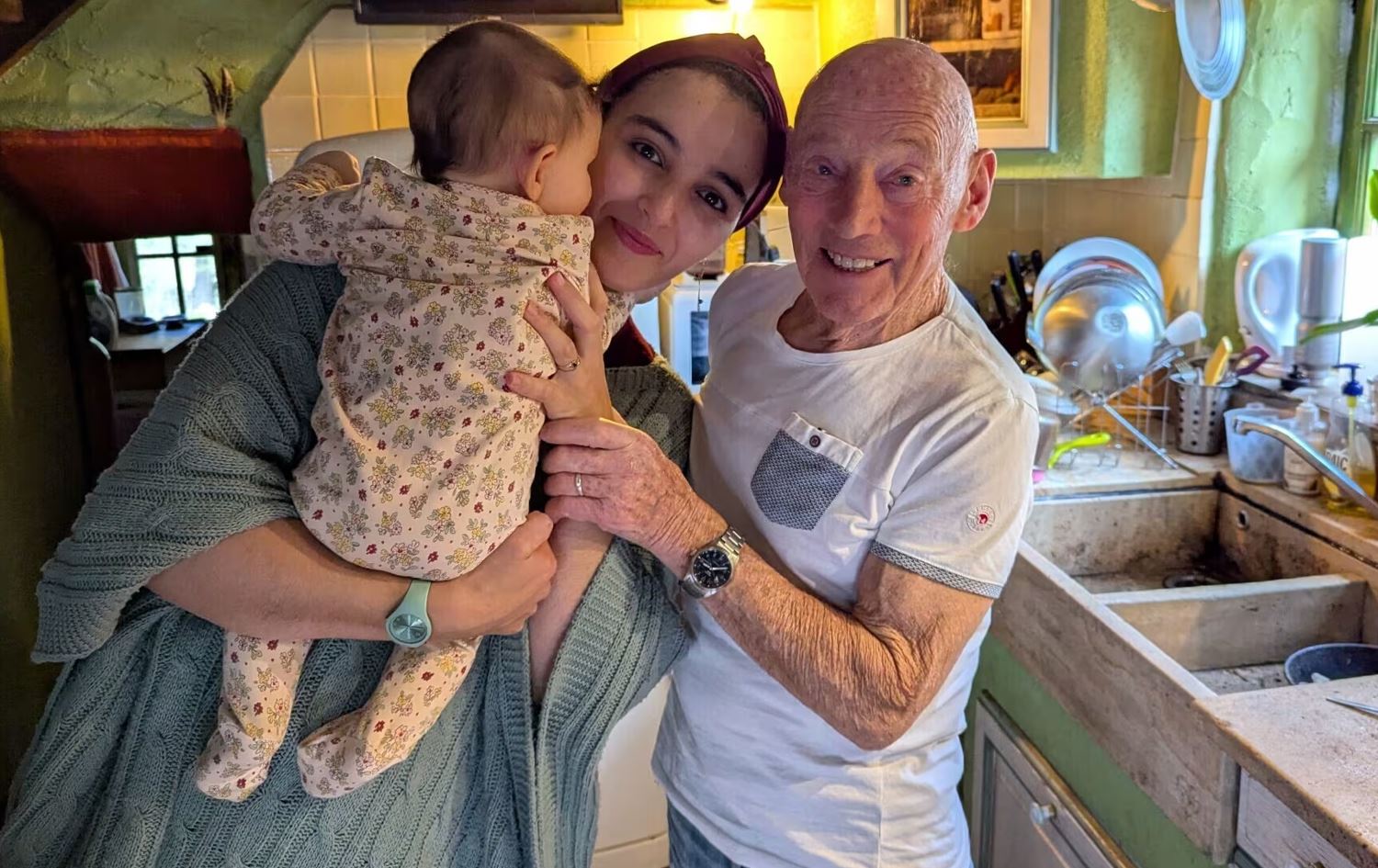 پیاوێکی بەساڵاچووی فەرەنسی لە یادی لەدایکبوونیدا وێنەی خۆی لەگەڵ هاوژینە نوێیەکەی و کچە شەش مانگەکەی داناوە و دەڵێ، دڵخۆشە بە چاودێریکردنیان و ژیانێکی نوێیان پێ بەخشیوە.