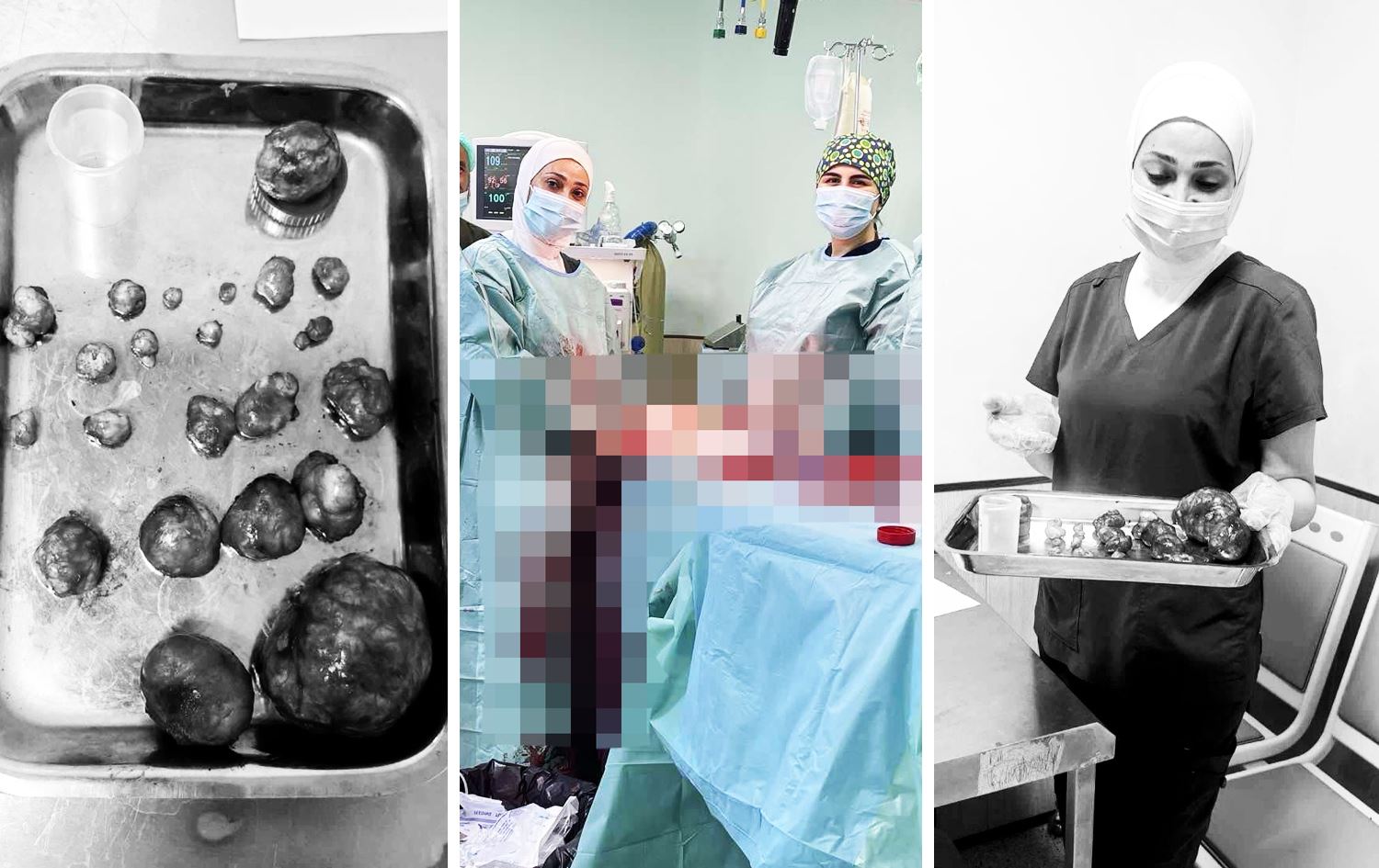 د. زەینەب عەباس، پسپۆڕ و سەرپەرشتیاری تیمی نەشتەرگەرییەکە بە رووداوی گوت، ئەو خانمە ئازاری سکی هەبوو و سووڕی مانگانەشی تێکچووبوو، بە پشکنینی سۆنەر دەرکەوتووە کە کیسی و گرێی منداڵدانی هەیە.