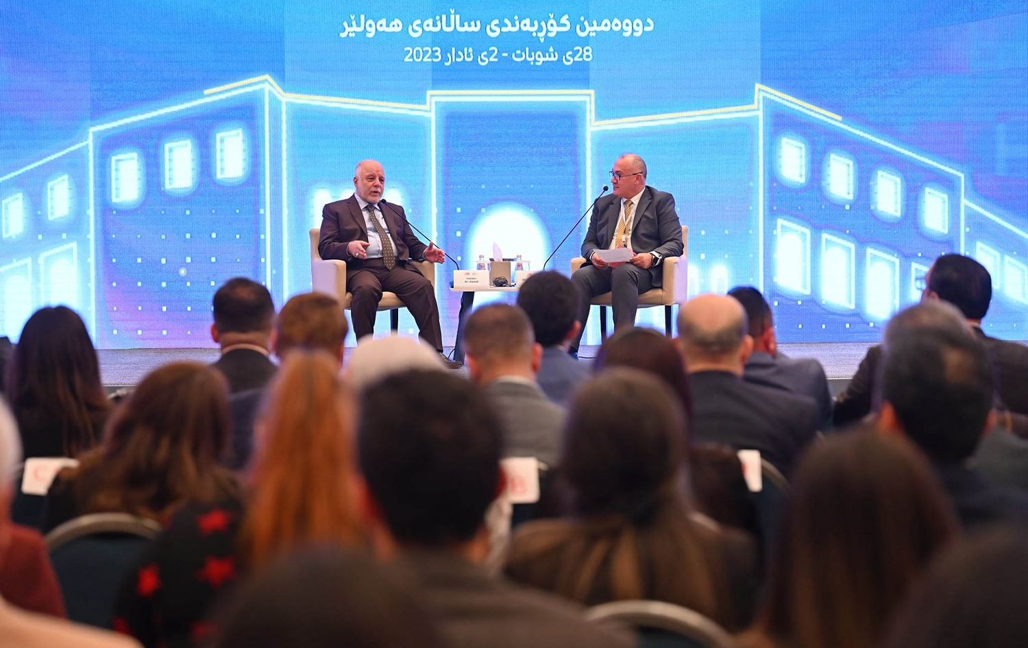 ئەمڕۆ پێنجشەممە، 02-03-2023، حەیدەر عەبادی، سهرۆكى هاوپهيمانيى نهسر و سهرۆكوهزيرانی پێشووترى عێراق لە پانێڵێک دا لە کۆڕبەندی هەولێر لەژێر ناوی "ئاسۆی تەگەرە ئابووری و سیاسییەکانی عێراق، ریفۆڕم یان داڕمان" قسەی کرد.