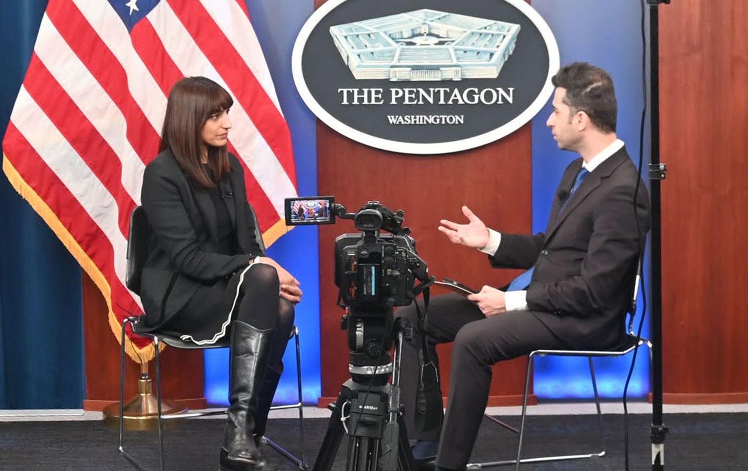 لە ژووری کۆنفرانسی رۆژنامەوانیی پێنتاگۆن، سابرینا سینگ، جێگری گوتەبێژی پێنتاگۆن لەم هەڤپەیڤینەدا لەگەڵ رووداو لەبارەی هێزەکانی ئەمریکا لە سووریا و رۆژئاوای کوردستان، ئەرکەکانی هێزەکانی ئەمریکا لە عێراق و سووریا، روانگەی ئەمریکا بۆ دەستەی تەحریر شام (هەتەشە)، دەنگۆی دامەزراندنی بنکەی ئەمریکا لە کۆبانێ، هەروەها حەشدی شەعبی و ئێران قسەی کرد.