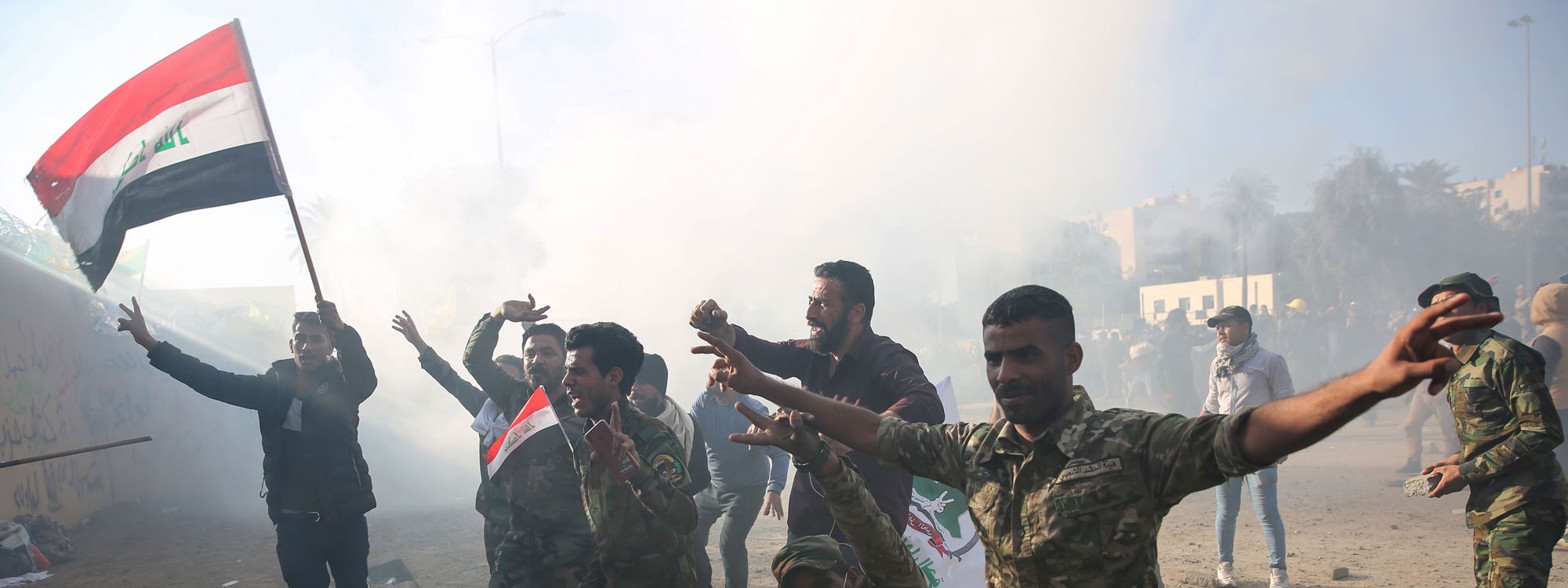 رۆژی سێشەممە 31-12-2019 لایەنگرانی حەشدی شەعبی لە کاردانەوەی هێرشەکانی ئەمریکا بۆسەر بنکە و بارەگاکانی حەشدی شەعبی هەڵیانکوتایە سەر باڵیۆزخانەی ئەمریکا و داوایانکرد باڵیۆزخانەی ئەمریکا لە عێراق داخرێت، هاوکات درووشمی "مەرگ بۆ ئەمریکا" و چەندین درووشمی دیکەی دژ بە ئەمریکایان بەرزکردەوە.