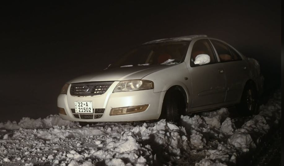 ئۆتۆمبێلێک لەسەر رێگای دەربەندی گۆمەسپان لە سنووری هەولێر بەجێماوە لەکاتی بەفری چڕدا. وێنە: بڵند تاهیر - رووداو
