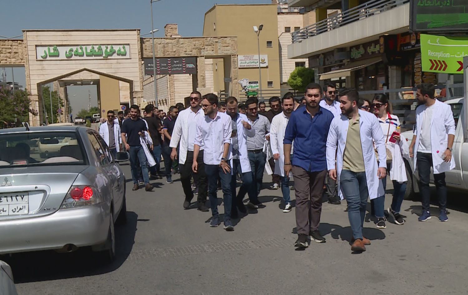 پزیشکانی گەنج لە بەیانیی رۆژی 1ـی ئابەوە لەبەردەم نەخۆشخانەی شار لە سلێمانی بایکۆتیان دەستپێکرد.