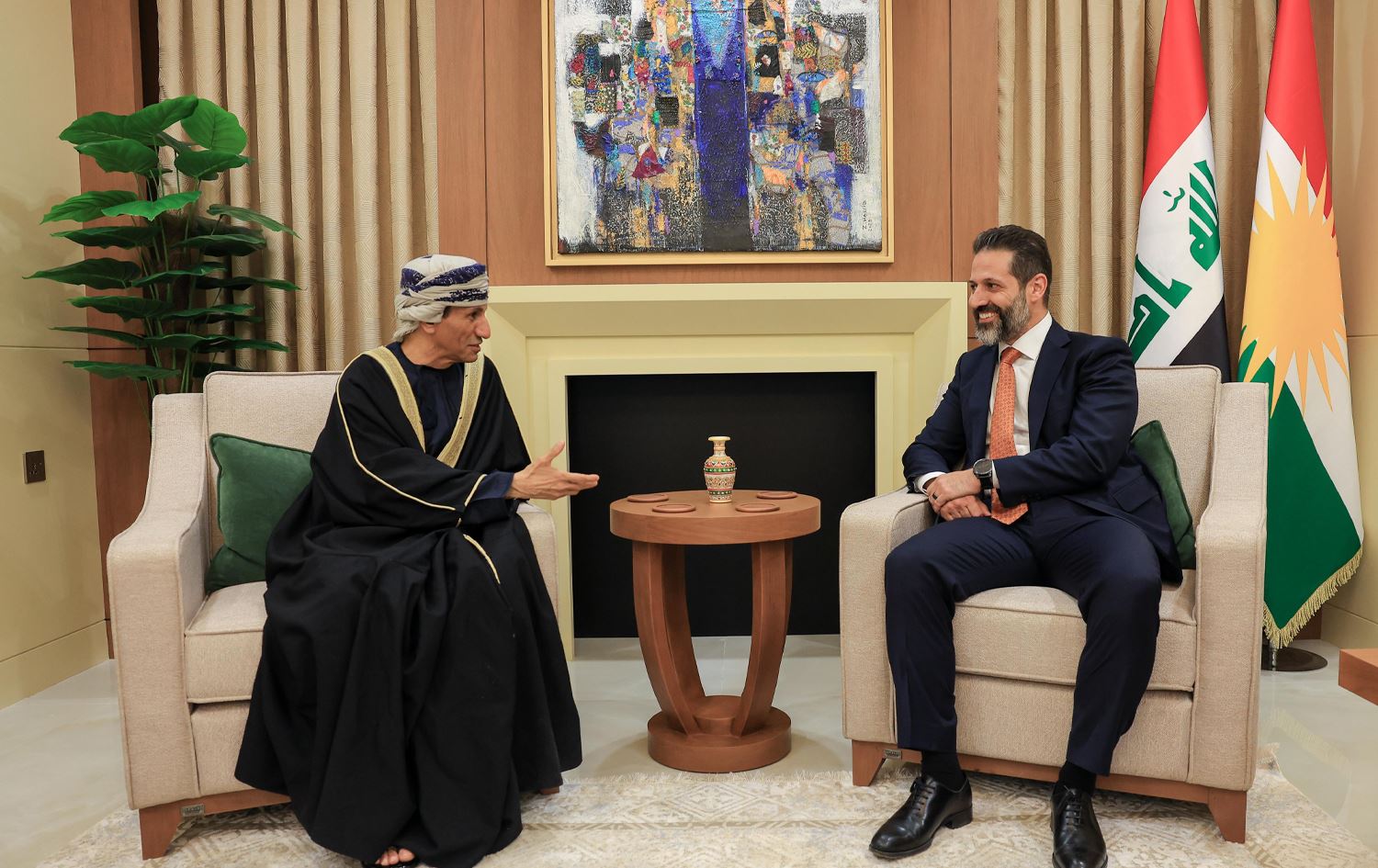 قوباد تاڵەبانی، جێگری سەرۆکوەزیرانی هەرێمی کوردستان و محەممەد ئەلحەسان، نوێنهرى تايبهتى سكرتێرى گشتیی نەتەوەیەكگرتووەكان له عێراق