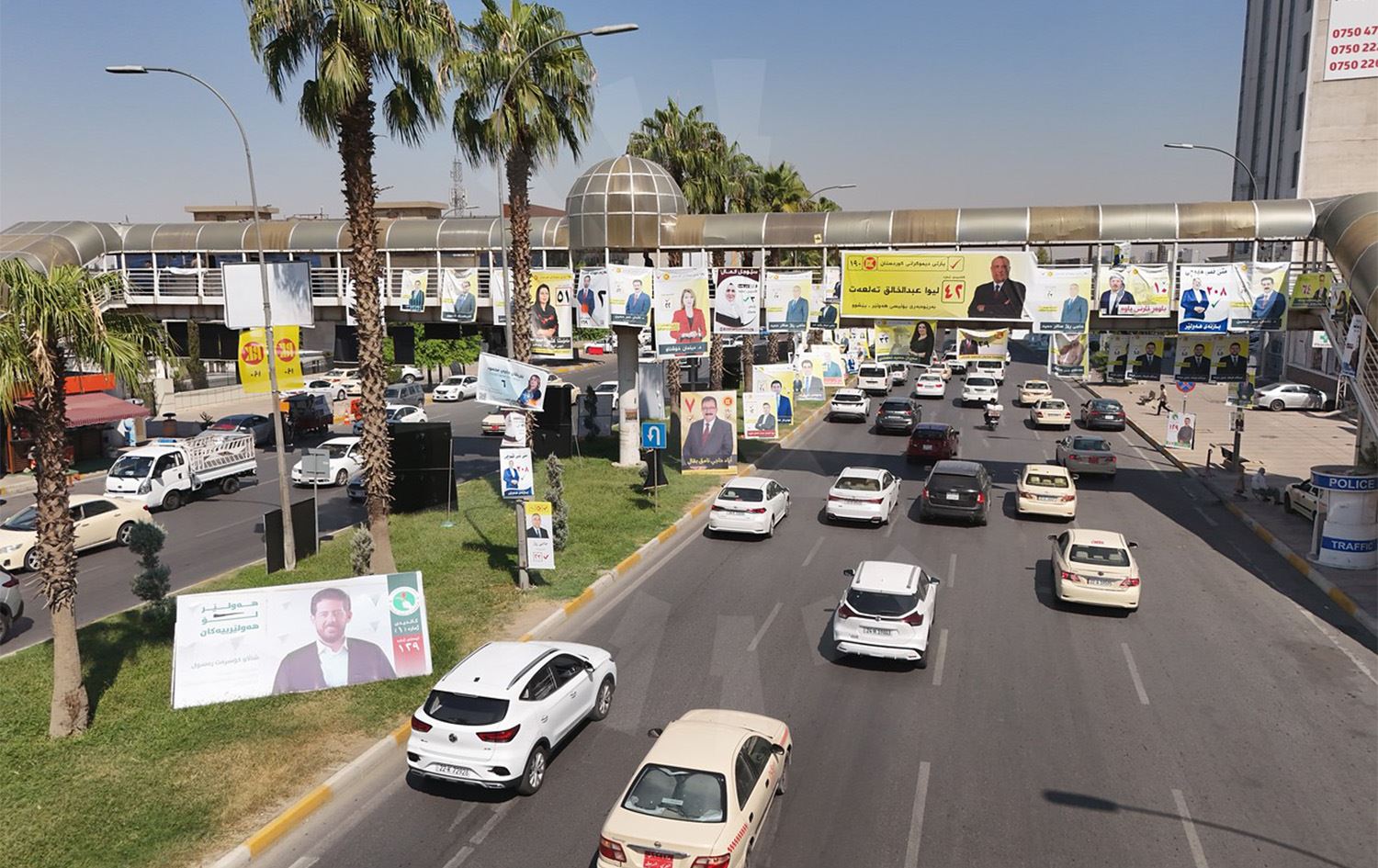 وێنەیەکی بانگەشەی هەڵبژاردن لەسەر شەقامی 60 مەتریی هەولێر لە هەڵبژاردنی پەرلەمانی کوردستان لە ساڵی 2024