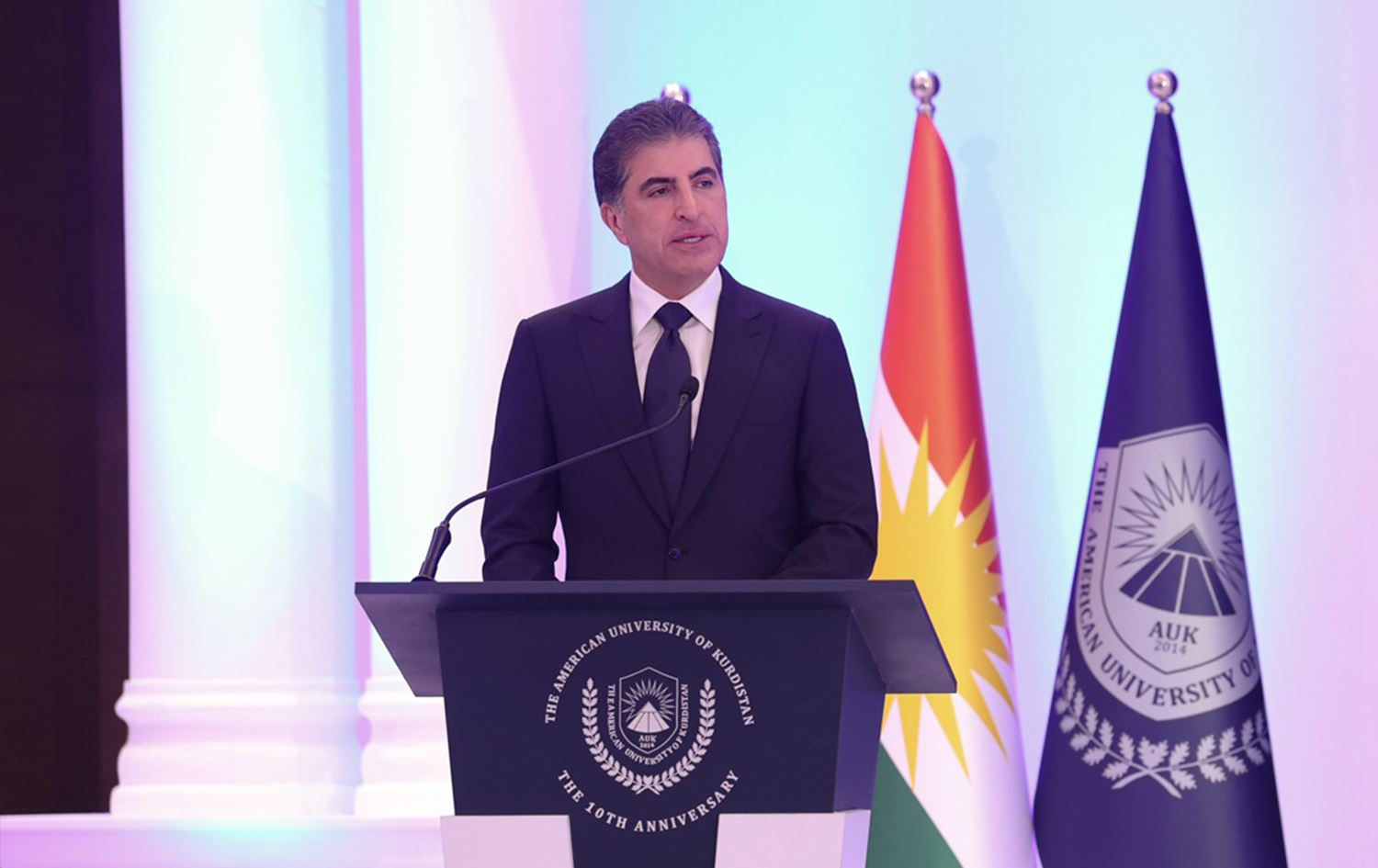 خۆشحاڵم که ئەم ئێوارهیه له رێورهسمى دەیەمین ساڵیادی دامەزراندنی زانکۆی ئەمهریکیی کوردستان بهشدارم. به گهرمی پیرۆزبایی و دهستخۆشی لەم دامەزراوە ئەکادیمییە پێشكهوتووه دهکهم کە لە ماوەی دە ساڵی رابردوودا، بیرۆکەیەکی تازهى بۆ گۆڕینی سیستەمی خوێندن و فێركردن لە هەرێمی کوردستان و بهرهو باشتربردنی، بەرجەستە کردووە.