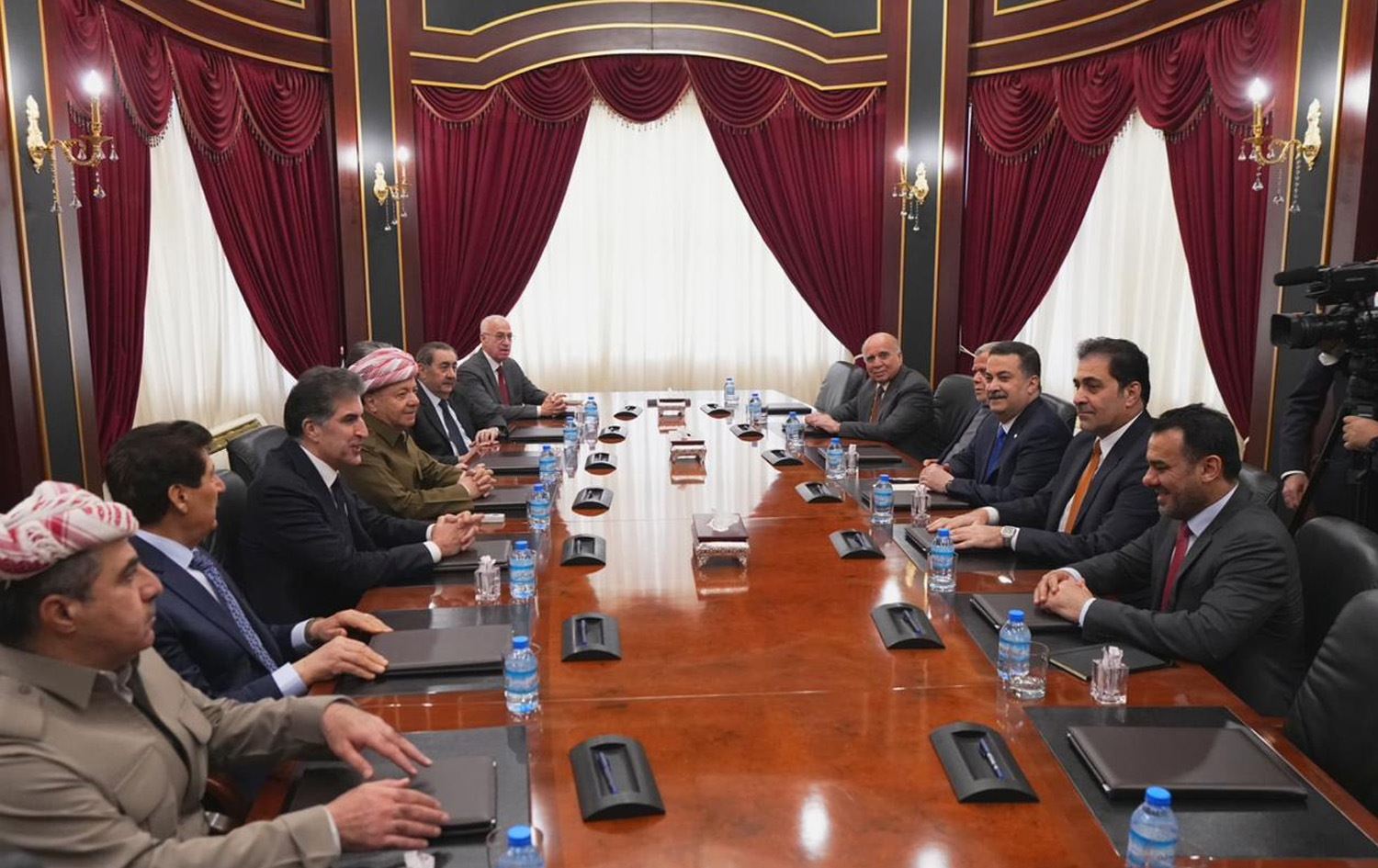 سەرۆک مەسعود بارزانی و شاندی چوارچێوەی هاوئاهەنگیی بە سەرۆکایەتی محەممەد شیاع سوودانی لە هەولێر کۆبوونەوە، پرسی هەڵبژاردنی سەرۆککۆمار و پەرەسەندنەکانی سووریا و رۆژئاوای کوردستان تاوتوێ کران. سەرۆک بازرانی رایگەیاند، "سەرۆككۆمار پشكی كوردە و دەبێ میكانیزمێكی دیاریكراو بۆ هەڵبژاردنی دیاری بكرێت و بچەسپێندرێت بۆ ئەوەی هەموو كەڕەتێك پڕۆسەی سیاسی تووشی كێشە نەبێت".